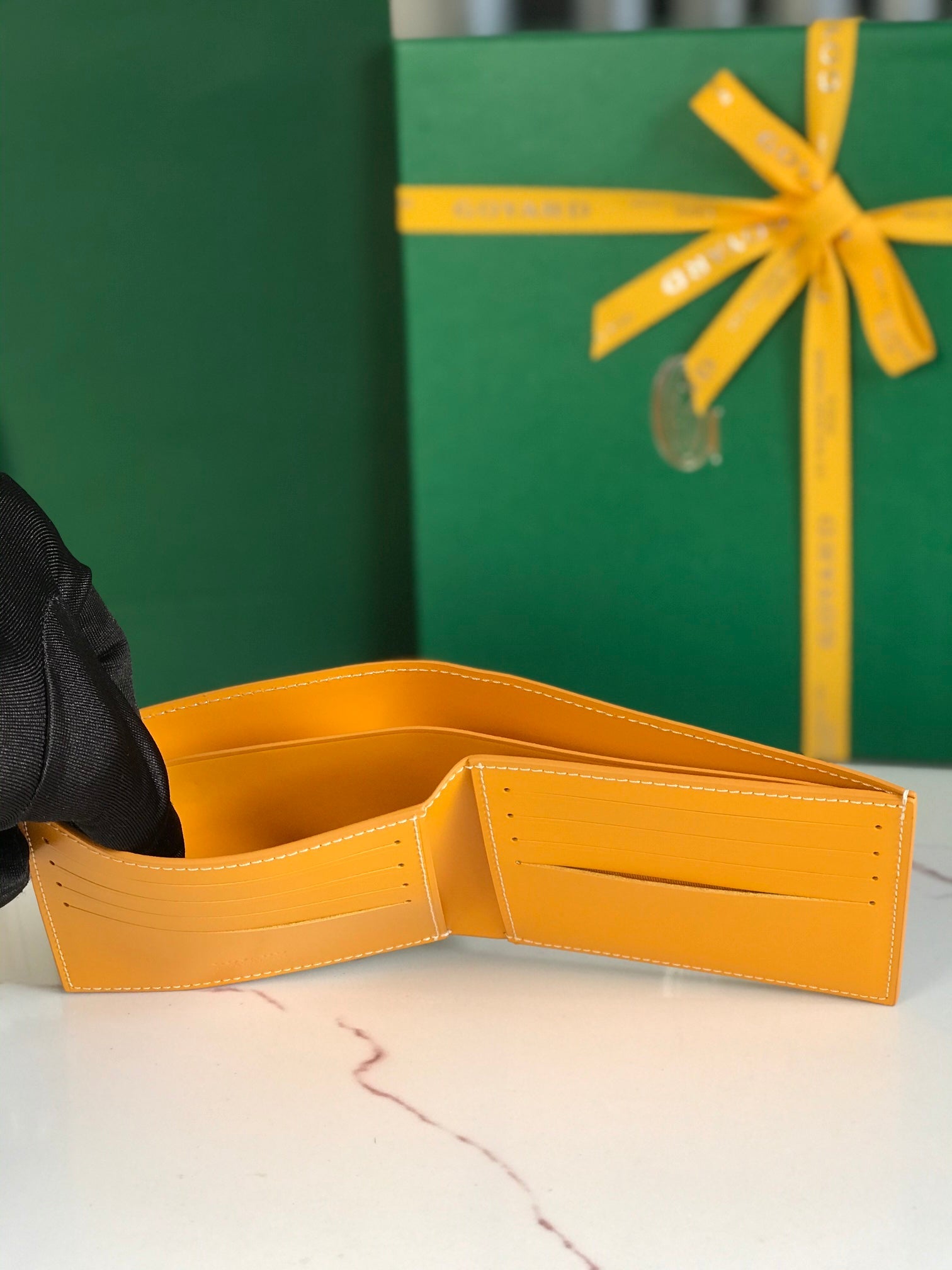 Goyard Victoire Wallet 11cm Yellow Canvas & Cafskin