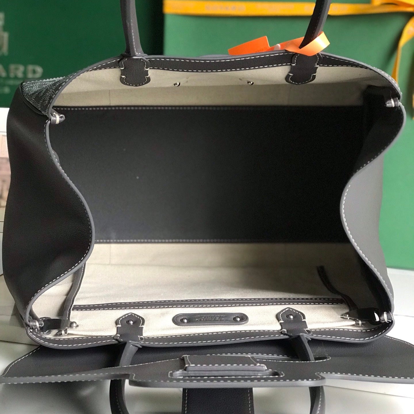 SAIGON SOUPLE BAG 34 IN BLACK GOYARDINE CANVAS AND CALFSKIN