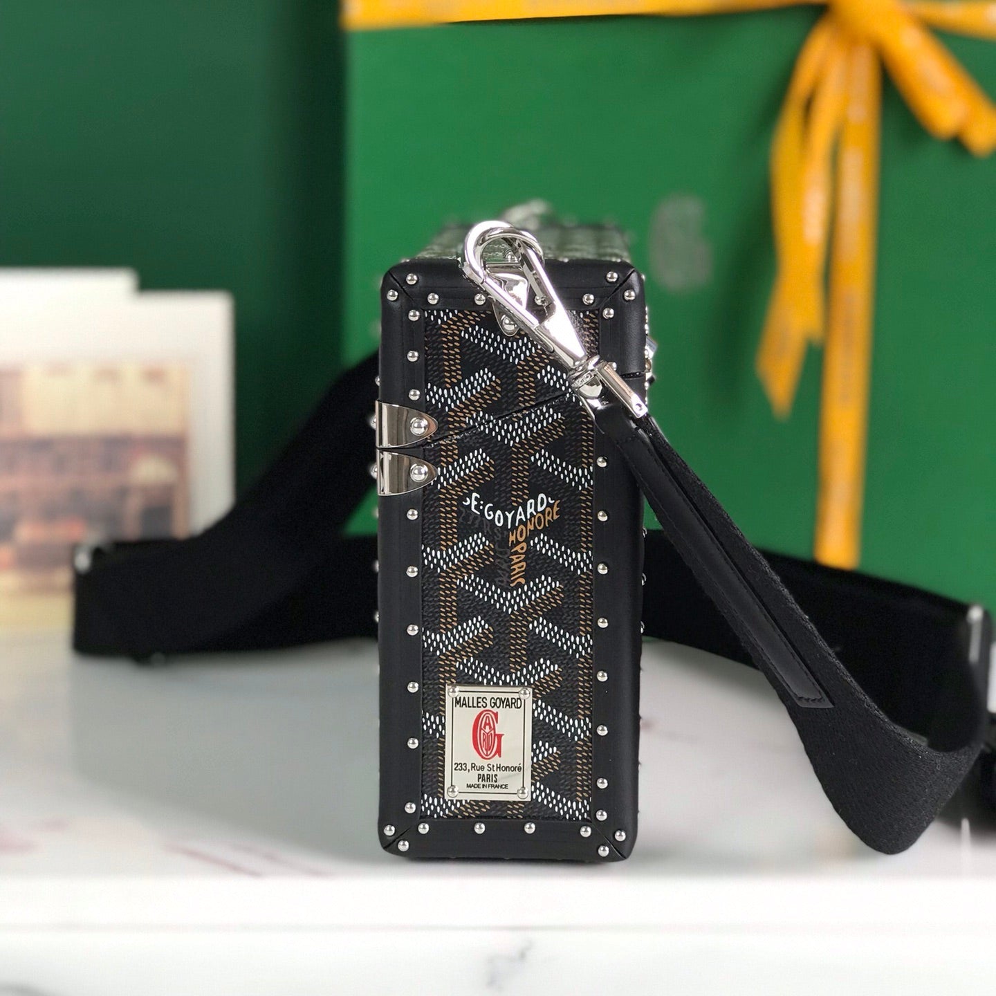 CASSETTE TRUNK BAG 21 IN BLACK GOYARDINE CANVAS & CLAMECY COWHIDE