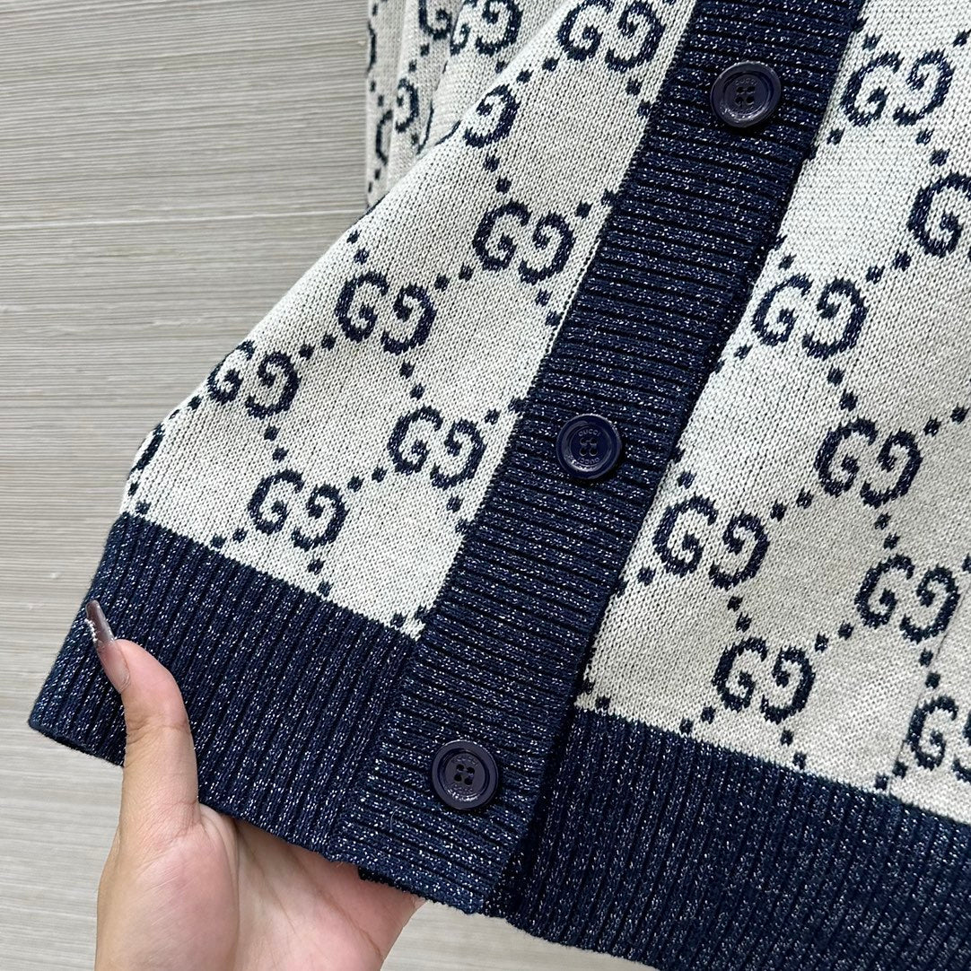 Gucci 2025 GG Cardigan Blue Gray Cotton