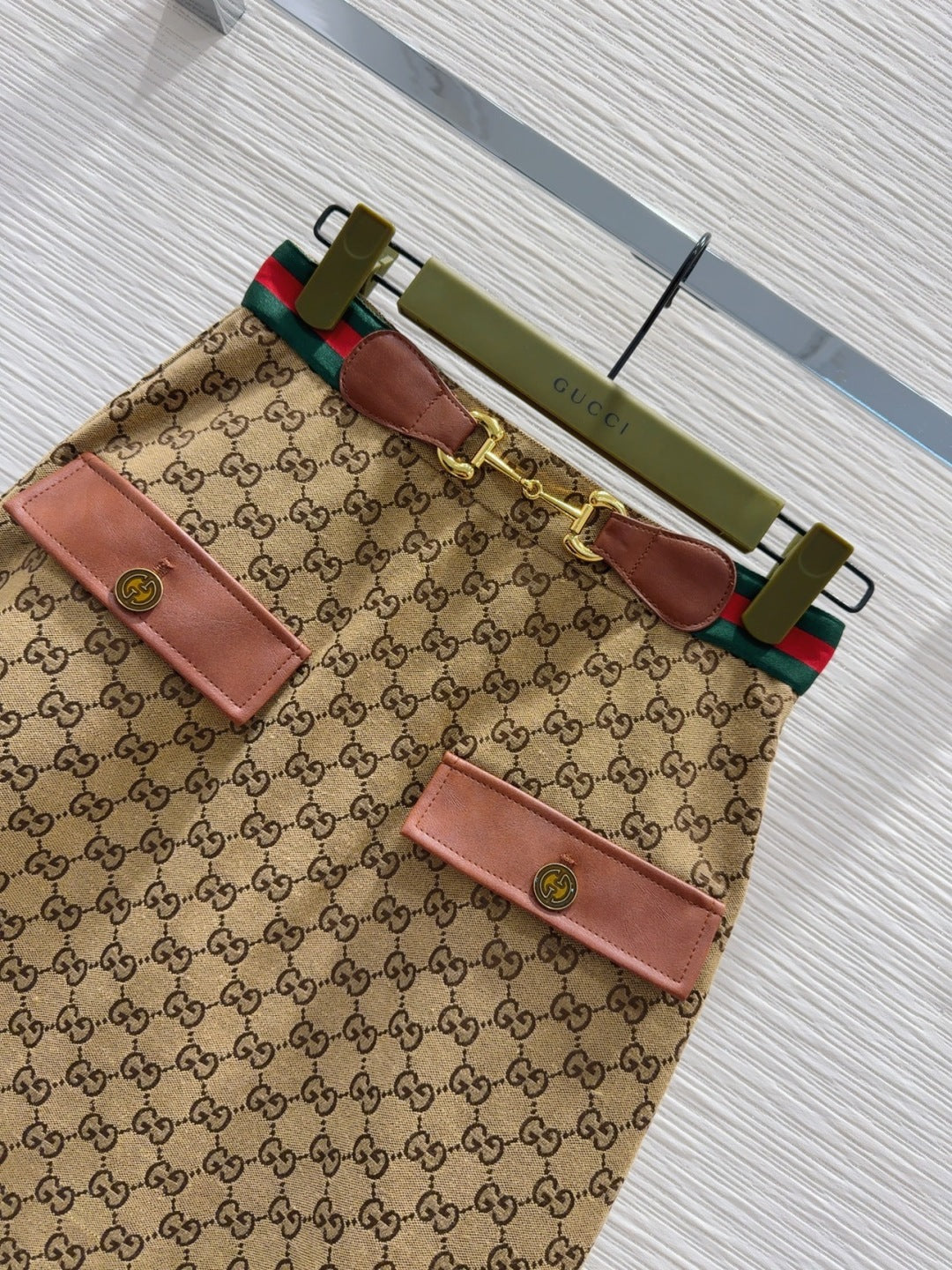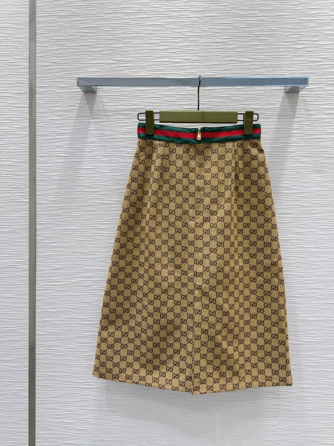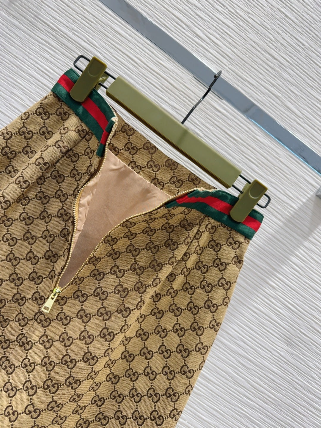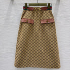 Gucci 2025 Long Skirt Camel and Ebony Polyester Fiber