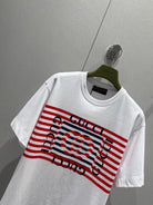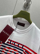 Gucci 25 Striped Logo Print Short-sleeved T-shirt White Red Cotton