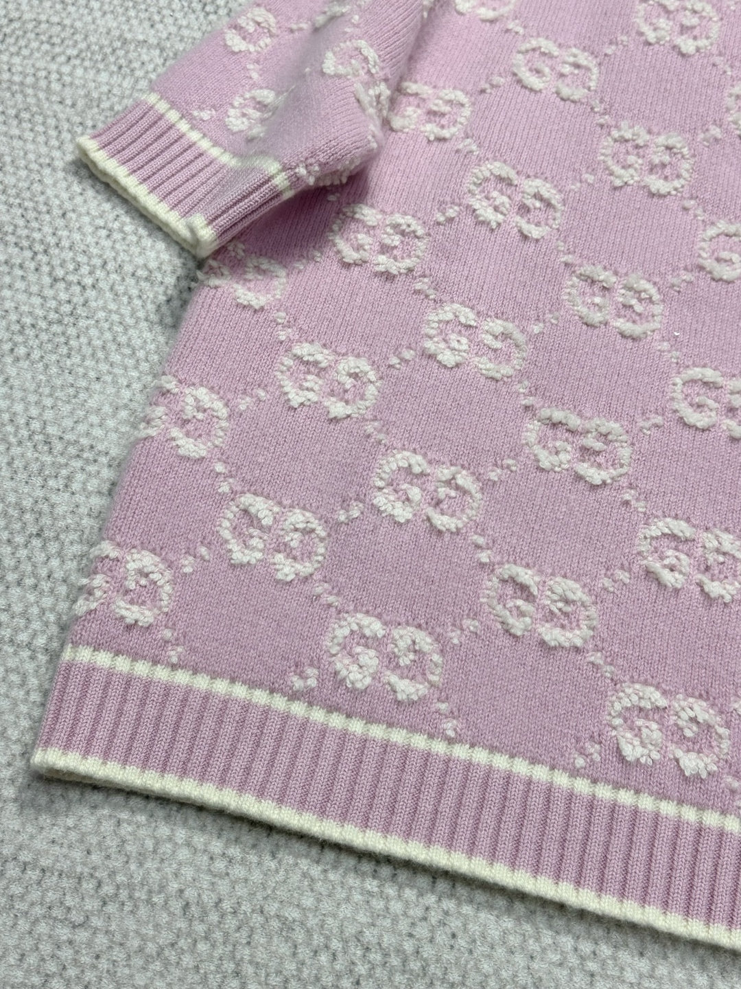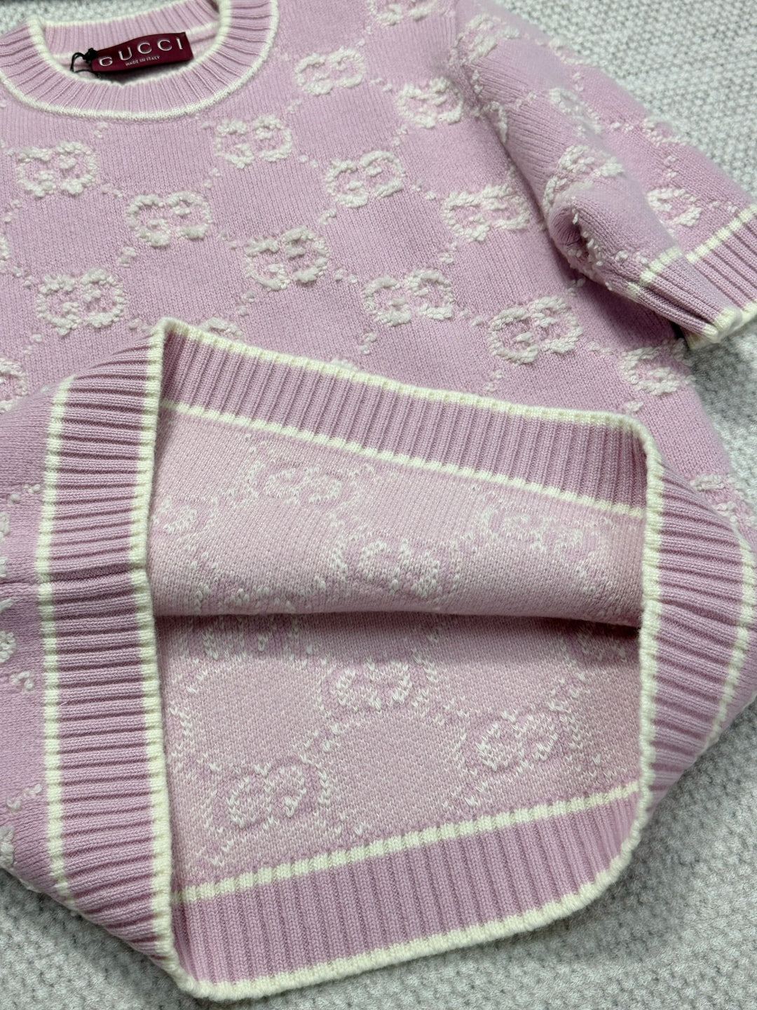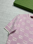 Gucci Knot Jacquard Knitted Short Sleeves Pink Wool