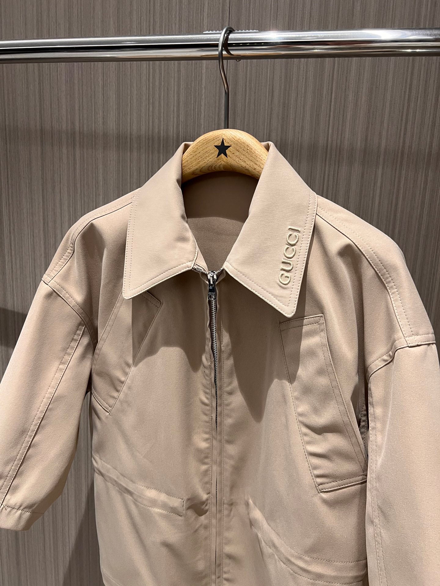 Gucci Short-sleeved Jacket Top Beige Polyester Fiber