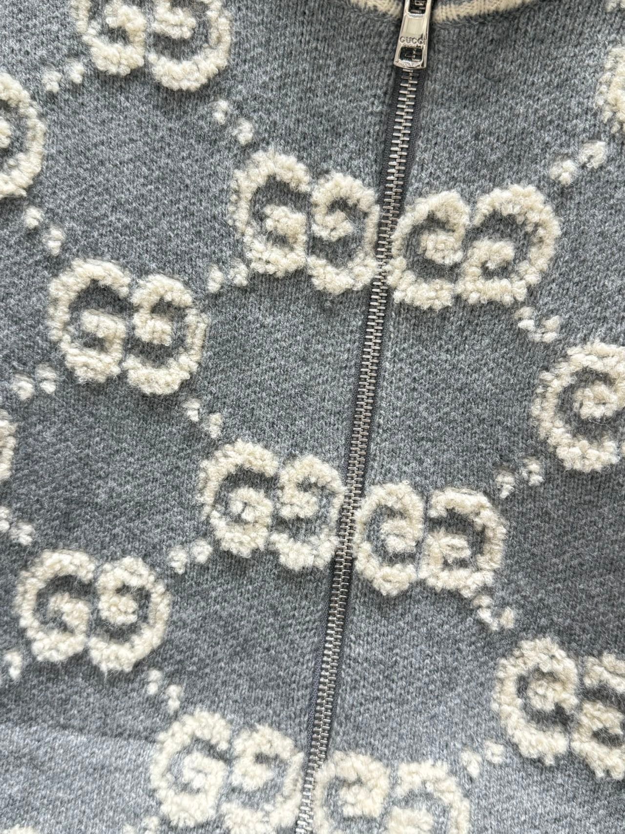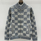 Gucci Zipper Cardigan Gray White Wool 304012