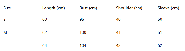 - Size: S, M, L