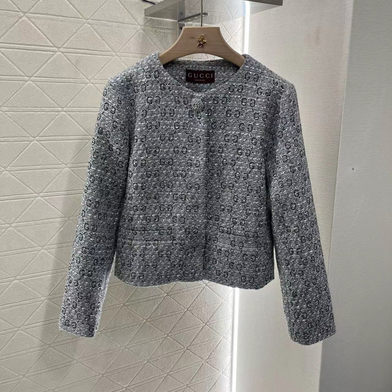 Gucci 25 Diamond Round Neck Jacket Gray Viscose