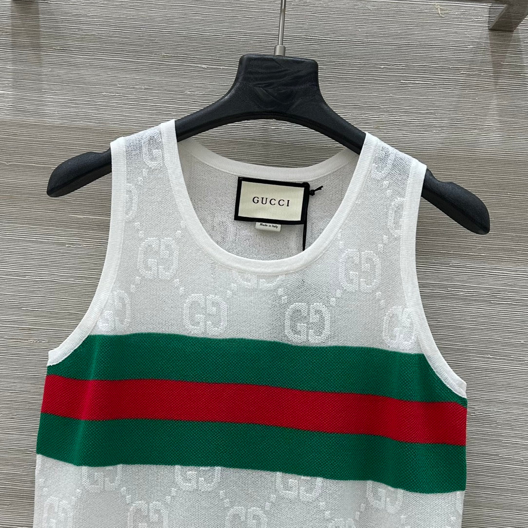 Gucci 25 Embroidered Jacquard Mesh Vest Top White Tencel