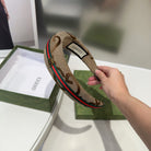 THICK HEADBAND IN BEIGE CANVAS WITH WEB 423670