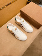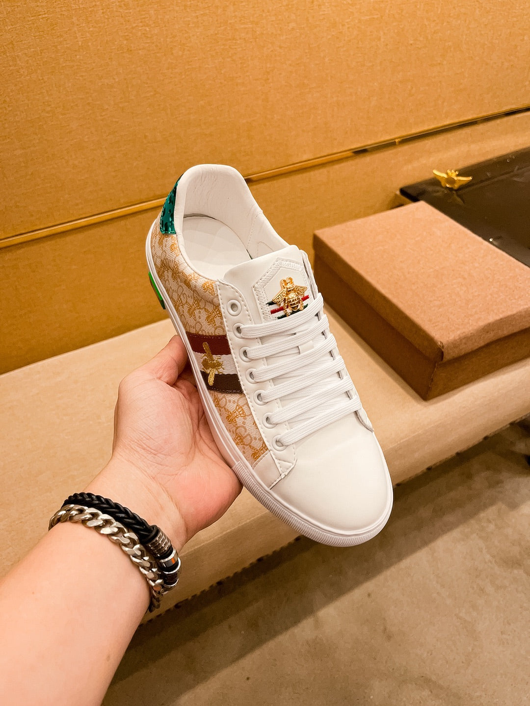 GG ACE EMBROIDERED BEE BEIGE LEATHER