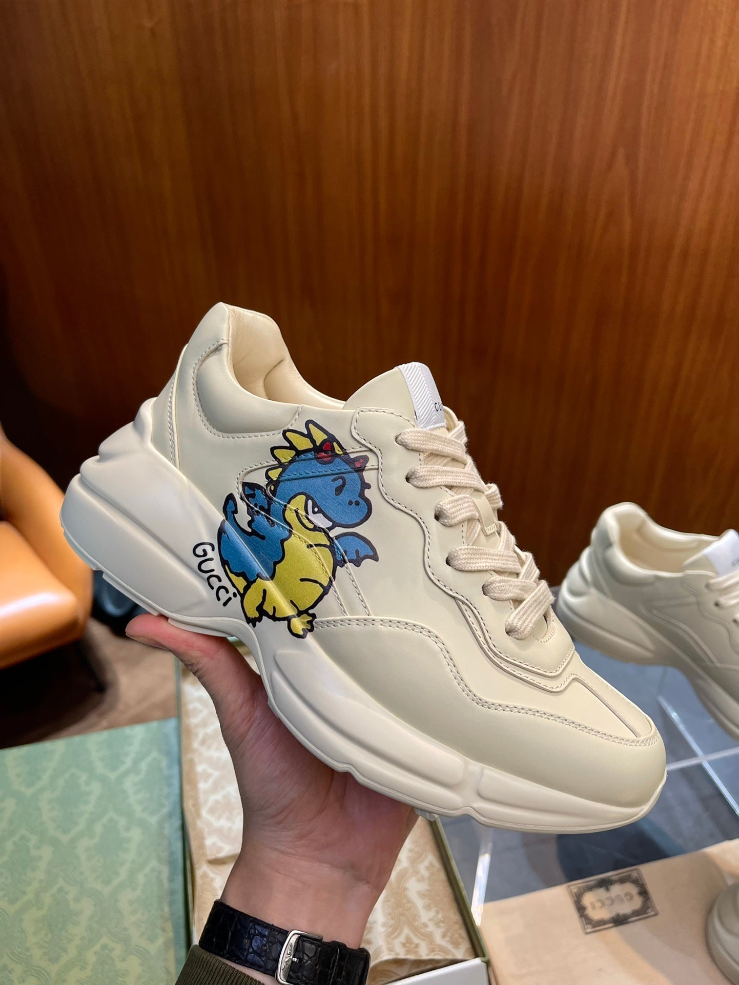 GG Men's Rhyton Sneaker Milk White Sticker Calfskin 524495