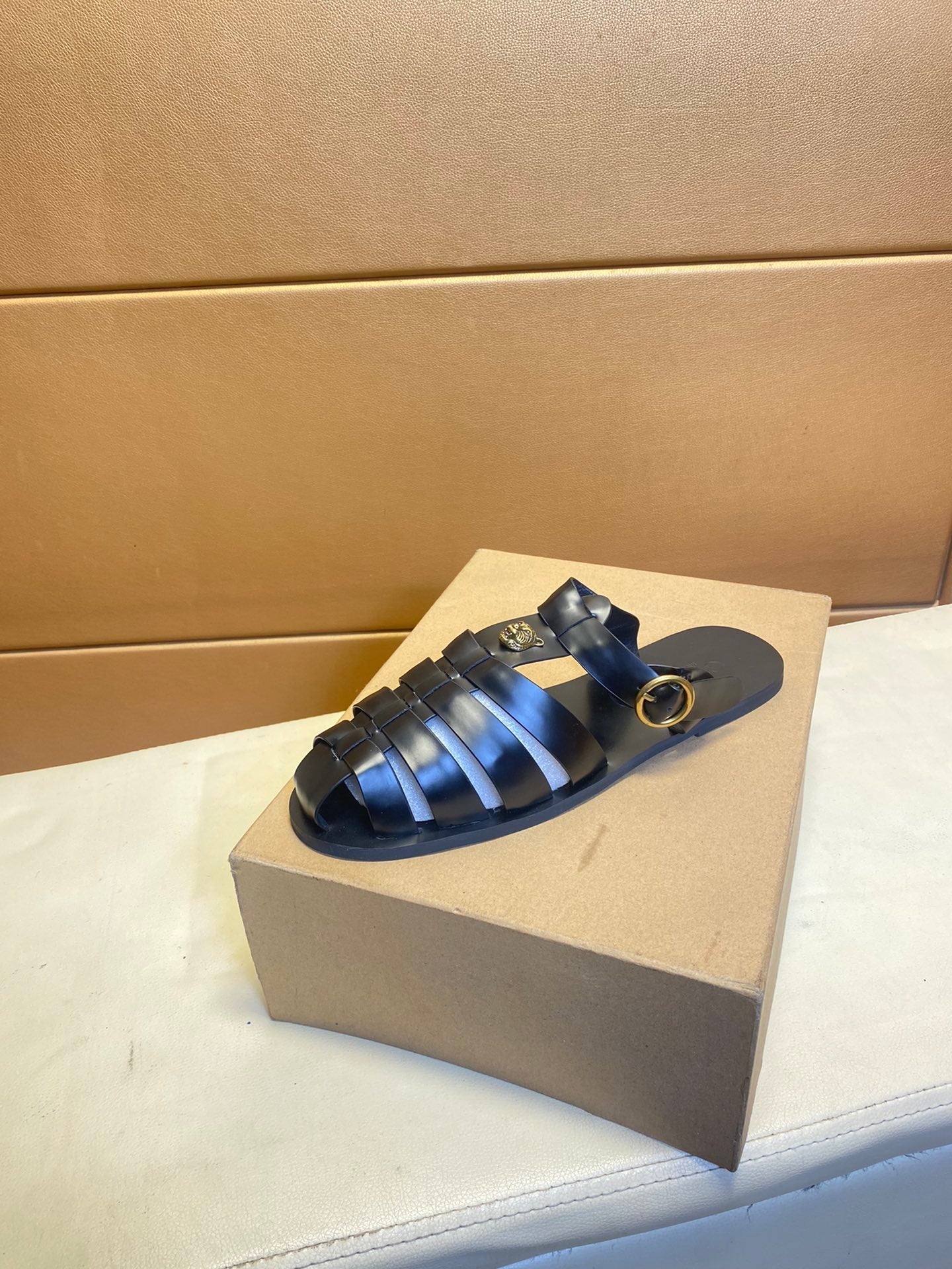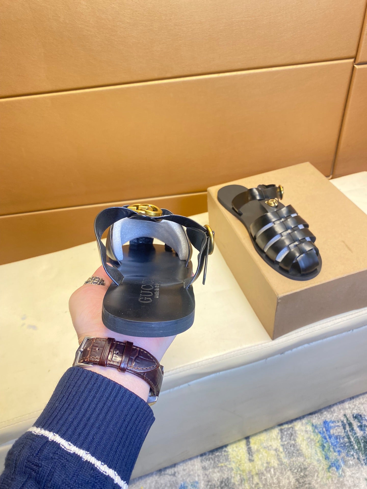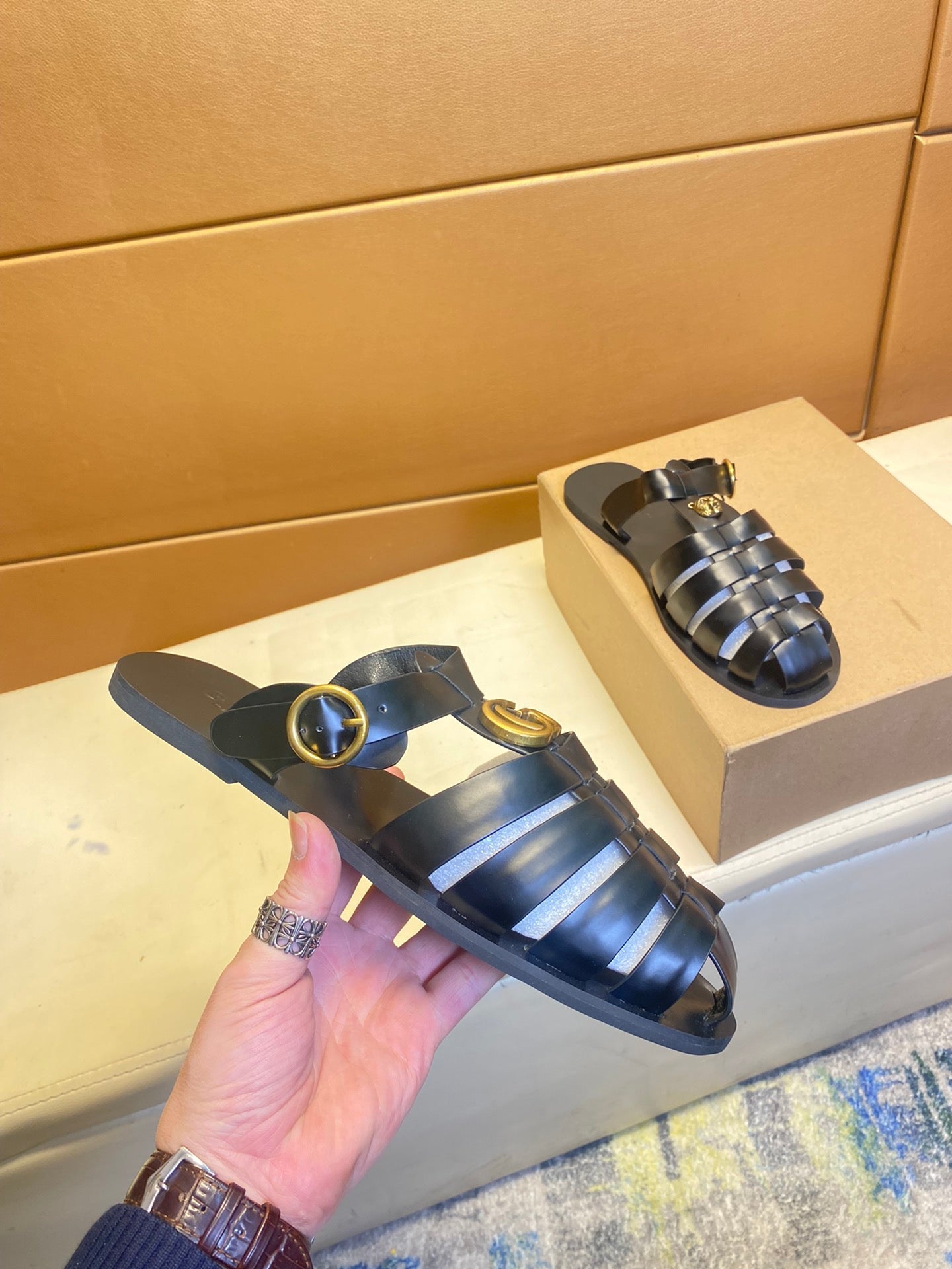 GG Men's Sandals Black Cowhide