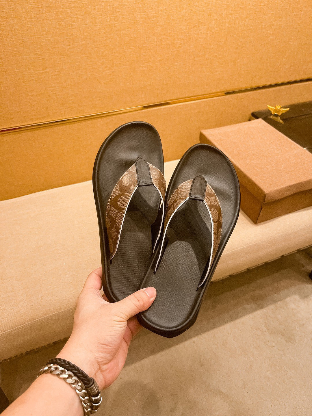 GG Men's Sandals Slide Brown Leather 587239