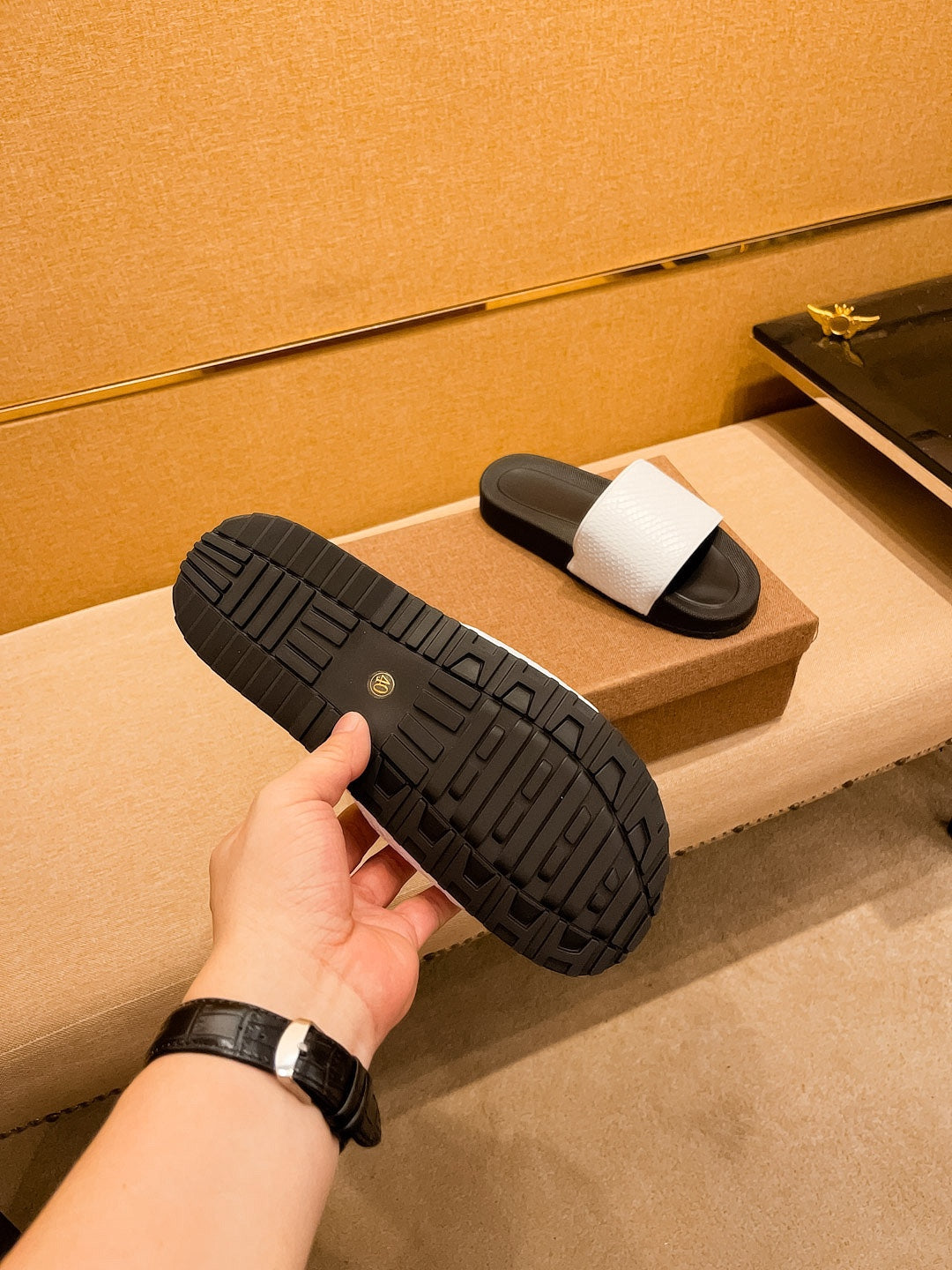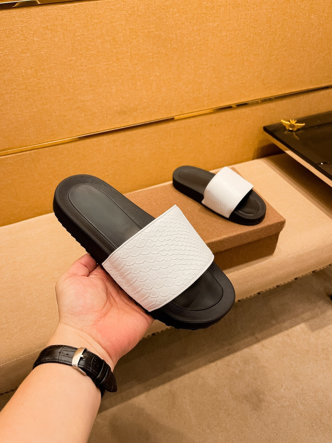 GG Men's Slide White Cowhide 709746