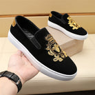 GG Men's Slip-on Loafers Black Gold Suede 545716