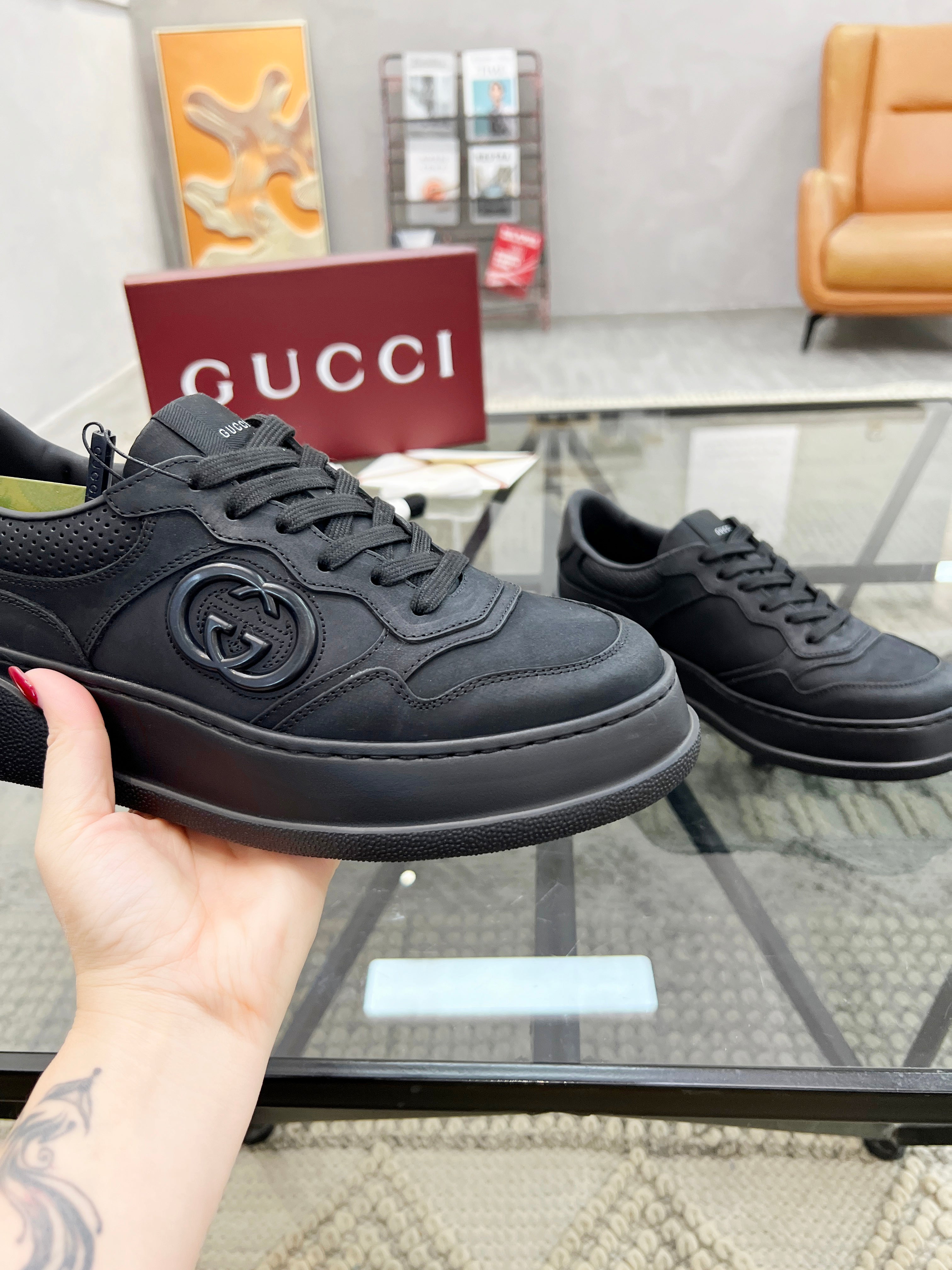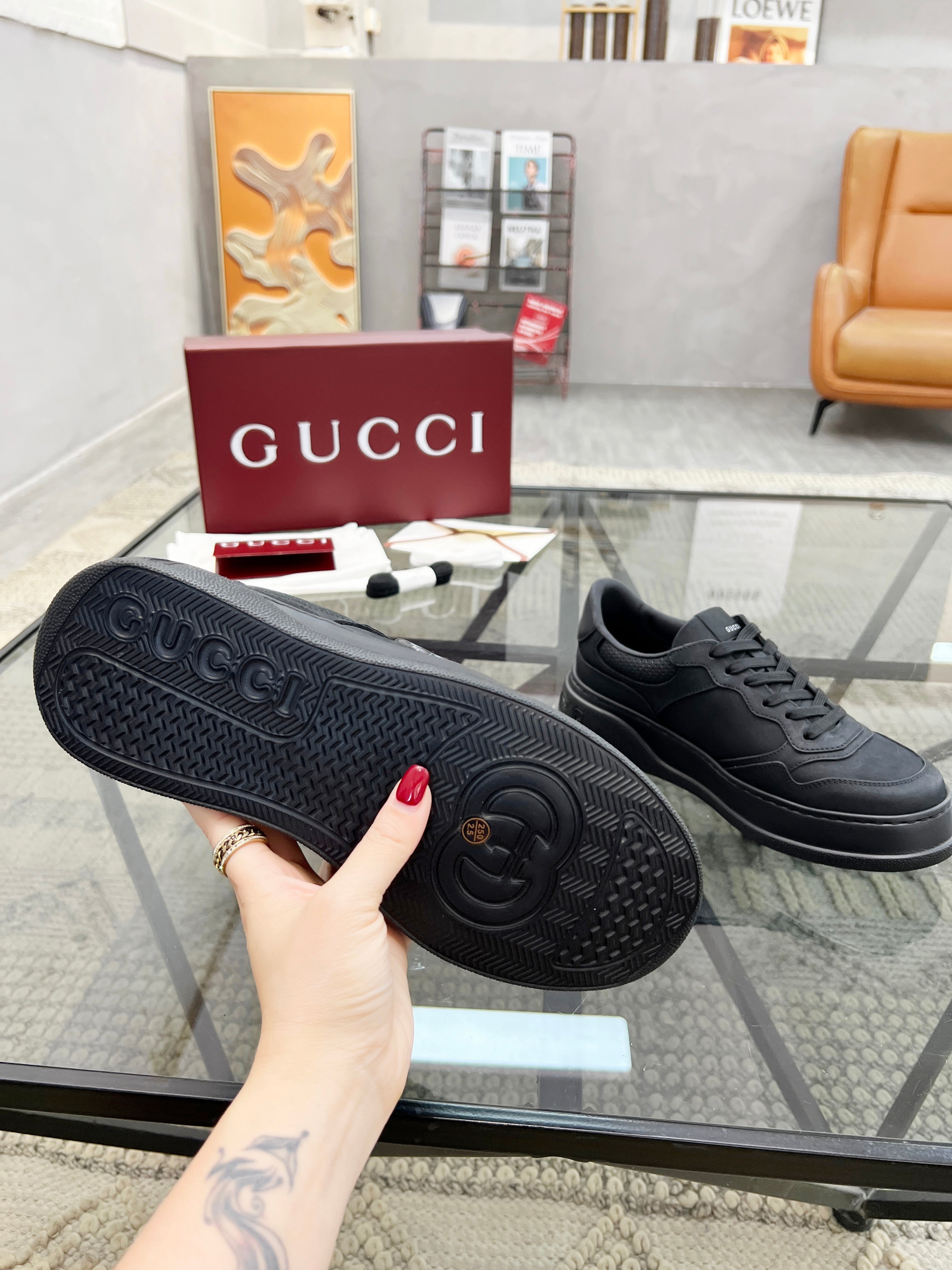 GG Men's Sneaker Black Cowhide 525914