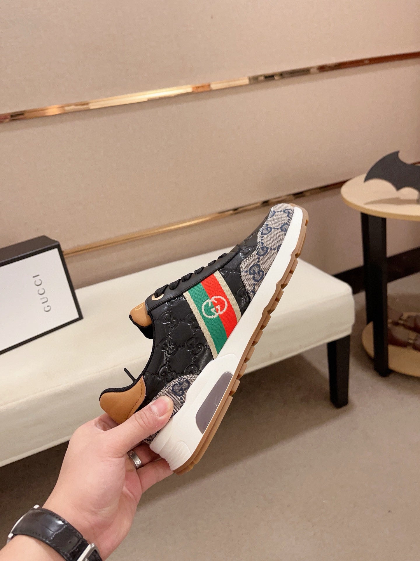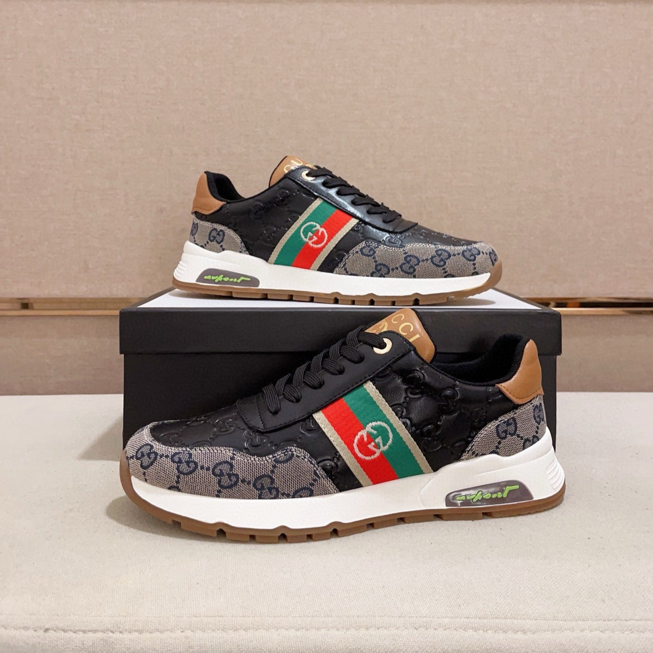 GG Men's Sneaker Black Grey Sheepskin Fabric 529027