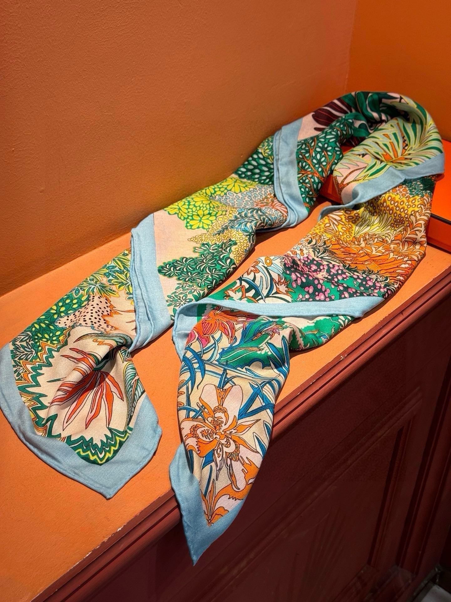 Mountain Zebra Scarf 185 CM Green Colorful Silk 402278
