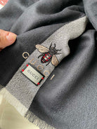 SCARF 200 CM IN BLACK MIX LIGHT GRAY CASHMERE WITH EMBROIDERED BEE 407515