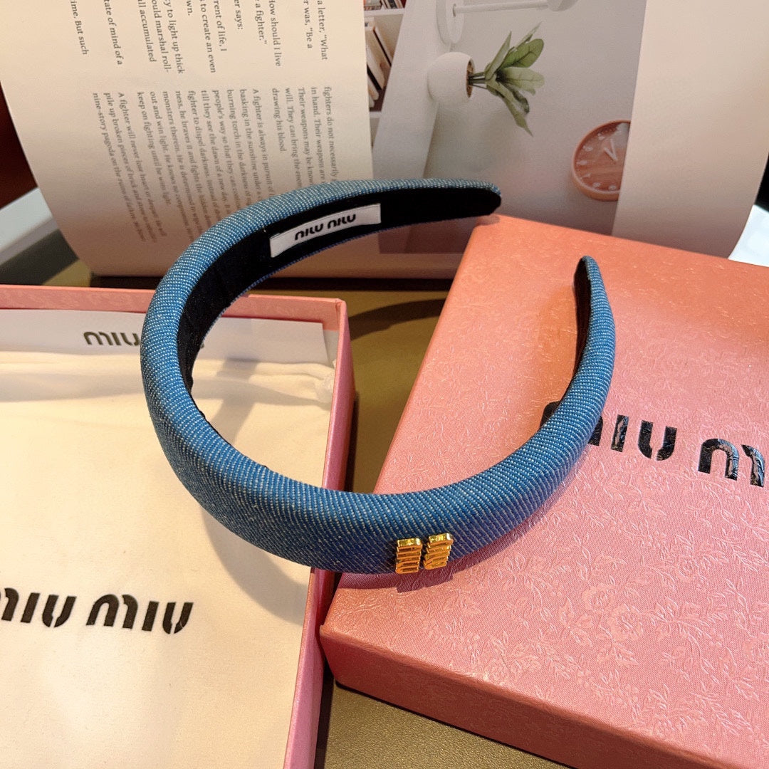 THICK HEADBAND IN AZURE BLUE DENIM GOLD LOGO 425464