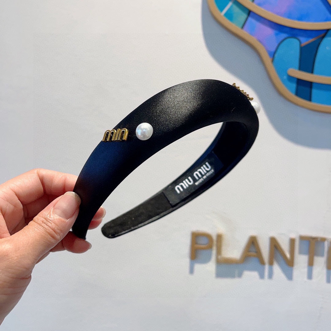 THICK HEADBAND ATTACHED PEARL IN BLACK SILK 429311