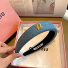THICK HEADBAND IN AZURE BLUE DENIM GOLD LOGO 425464