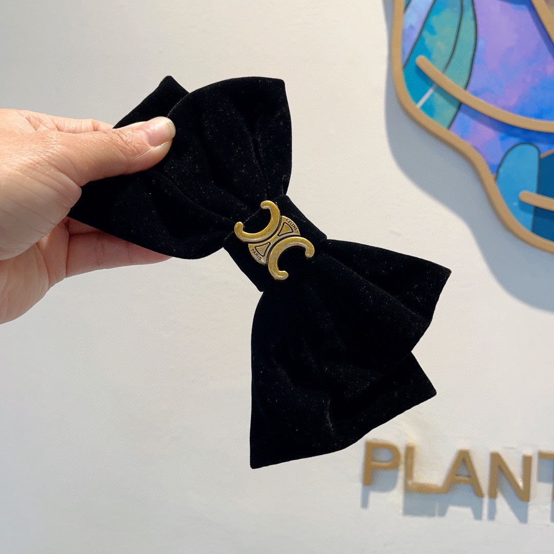 BLACK VELVET WITH GOLD LOGO HAIRPIN 387059