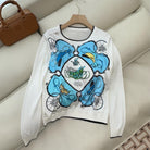 Hm Long Sleeve Knit Sweater White Blue Silk
