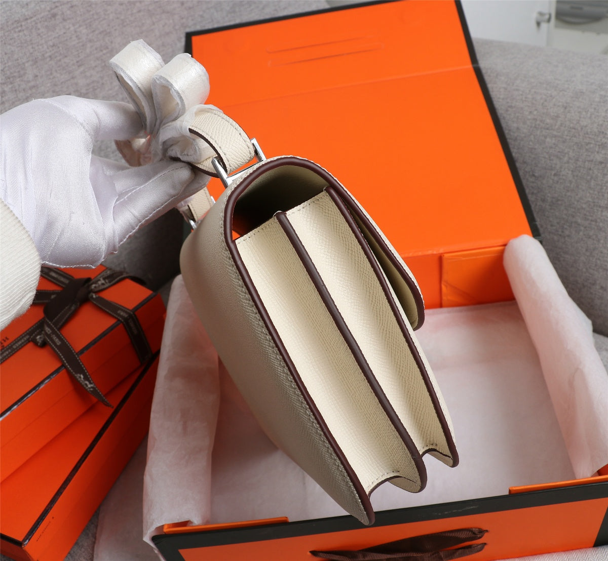 HM CONSTANCE BAGS 19 CREAM EPSOM SILVER HARDWARE