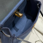 HM Mini Herbag Gold Buckle 20 Navy Blue Canvas and Hunter Cowhide 243255