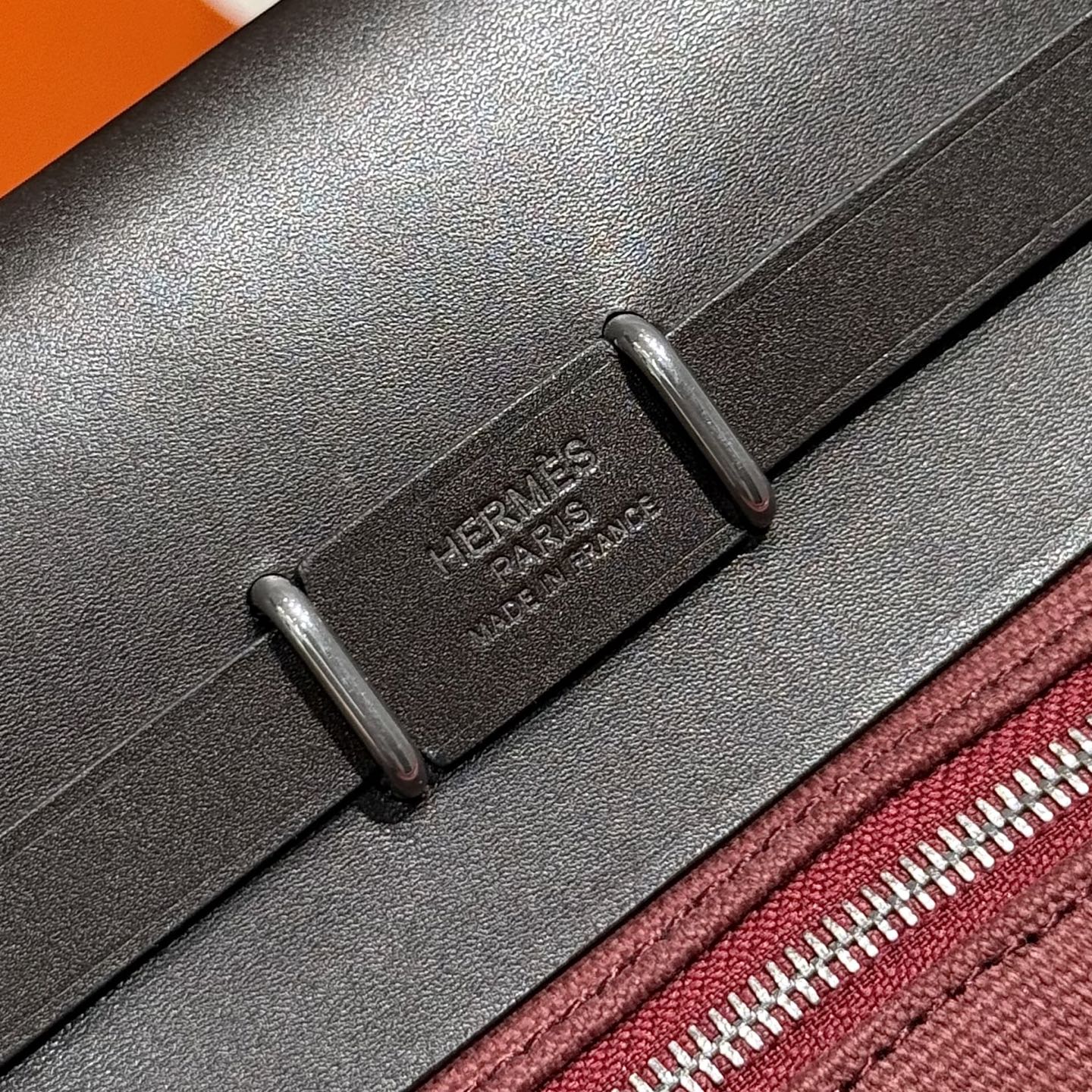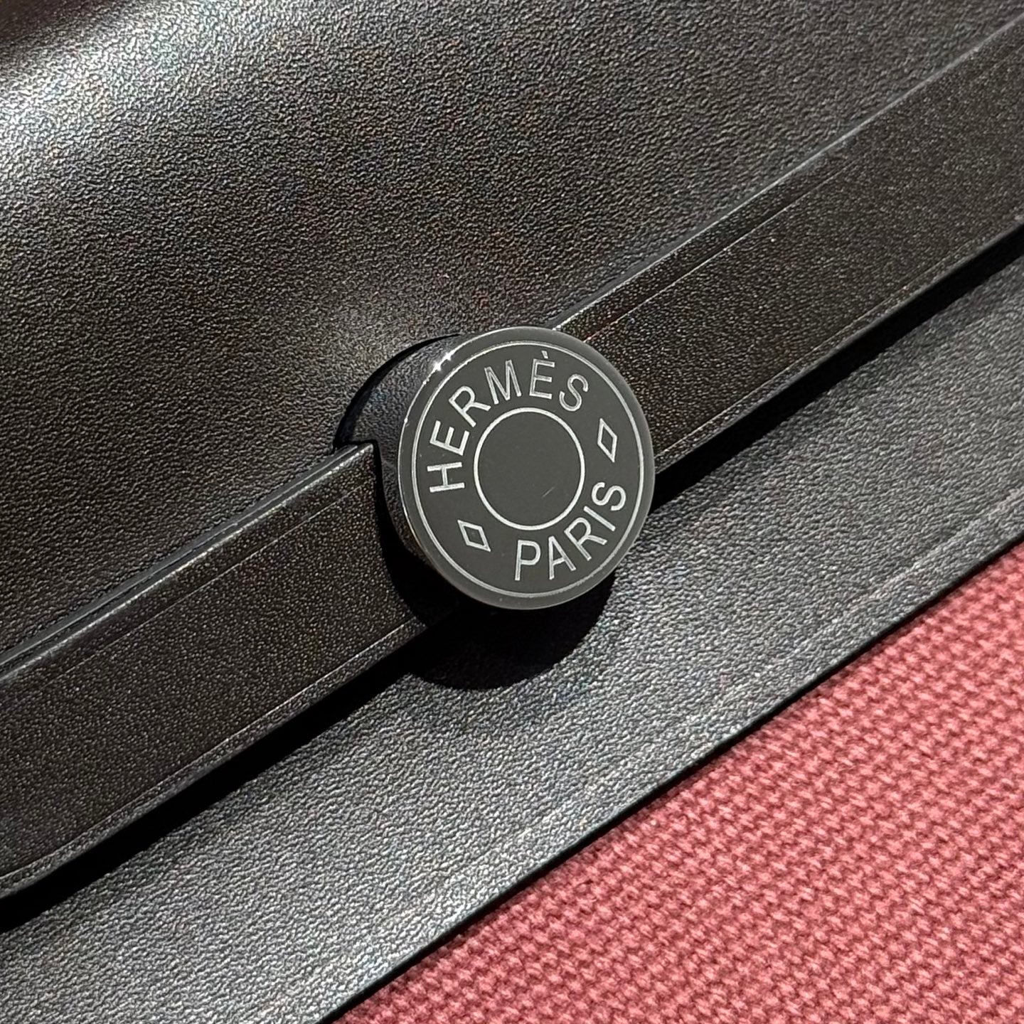 HM Mini Herbag Silver Buckle 20 Burgundy Canvas and Hunter Cowhide 243250
