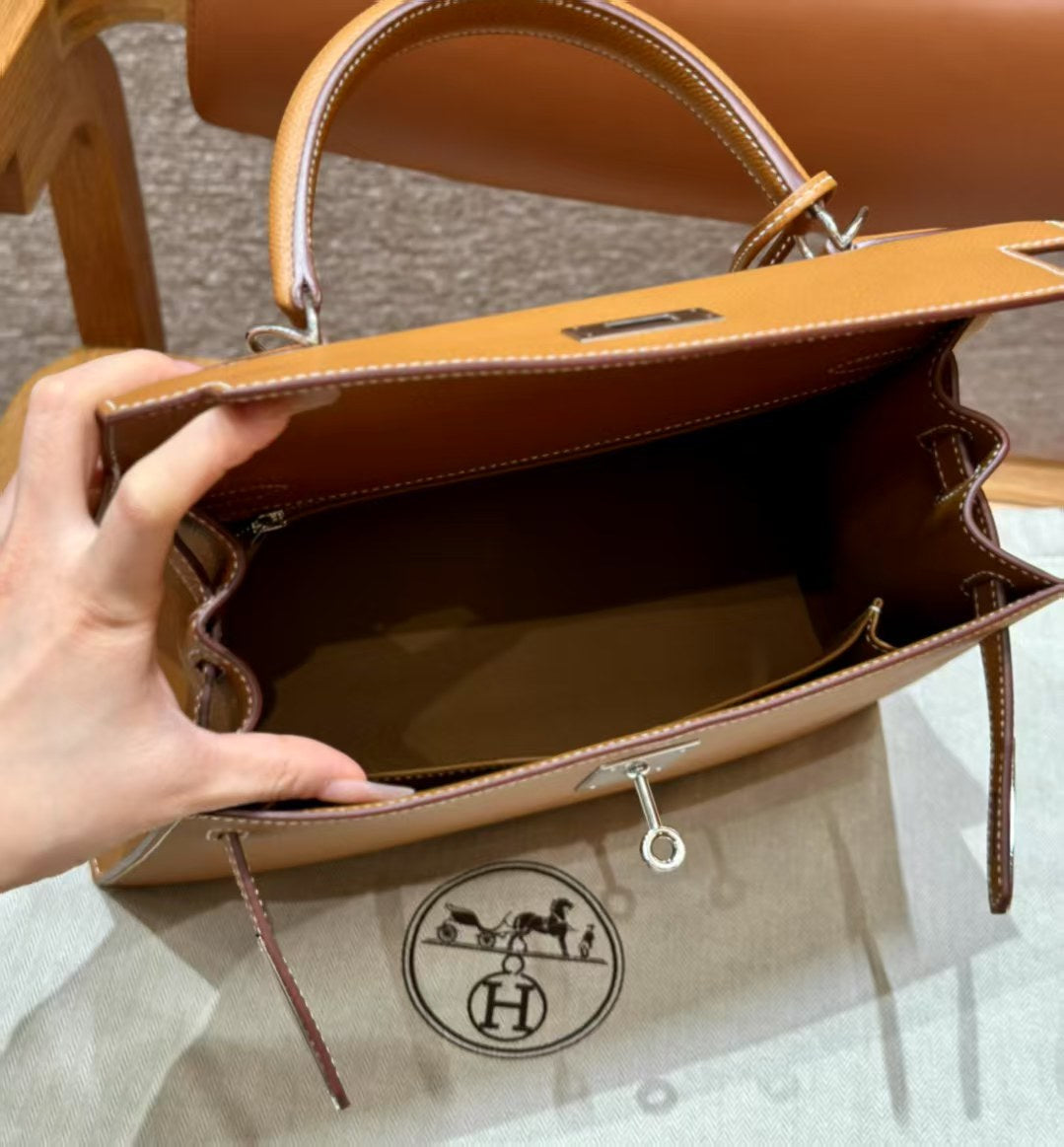 HM Kelly 32cm Bag Gold Epsom Silver Hardware