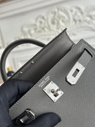 HM Mini Kelly 19cm Charcoal Epsom Silver Hardware