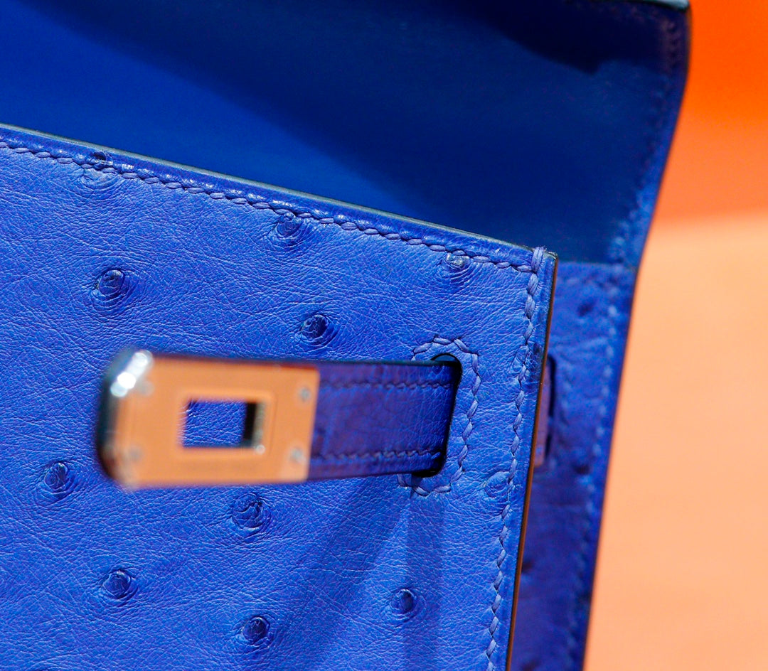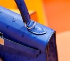 HM Mini Kelly 19cm Greek Blue Ostrich Silver Hardware