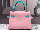 KELLY BAG 20 IN FLAMINGO PINK MIX CYAN BLUE OSTRICH LEATHER WITH SILVER HARDWARE (MADE - TO - ODER)