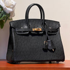 KELLY SELLIER 25 BAG IN BLACK OSTRICH LEATHER WITH GOLD HARDWARE (MADE - TO - ODER)
