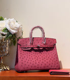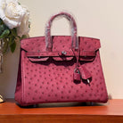 KELLY SELLIER 25 BAG IN CURRANT RED OSTRICH LEATHER WITH SILVER HARDWARE (MADE - TO - ODER)