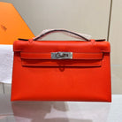 HM KELLY POCHETTE 22CM RED SWIFT SILVER HARDWARE