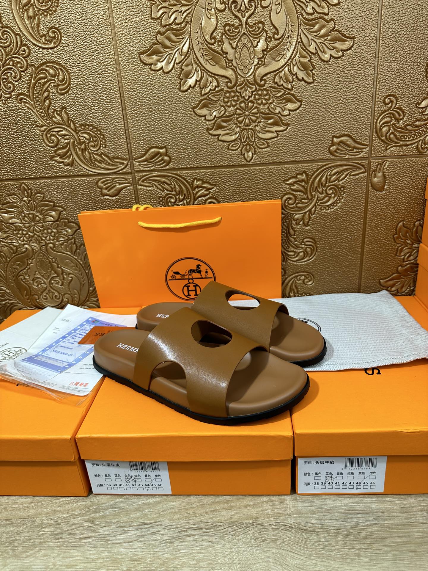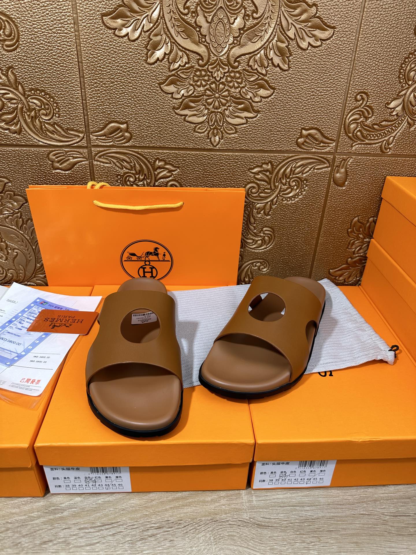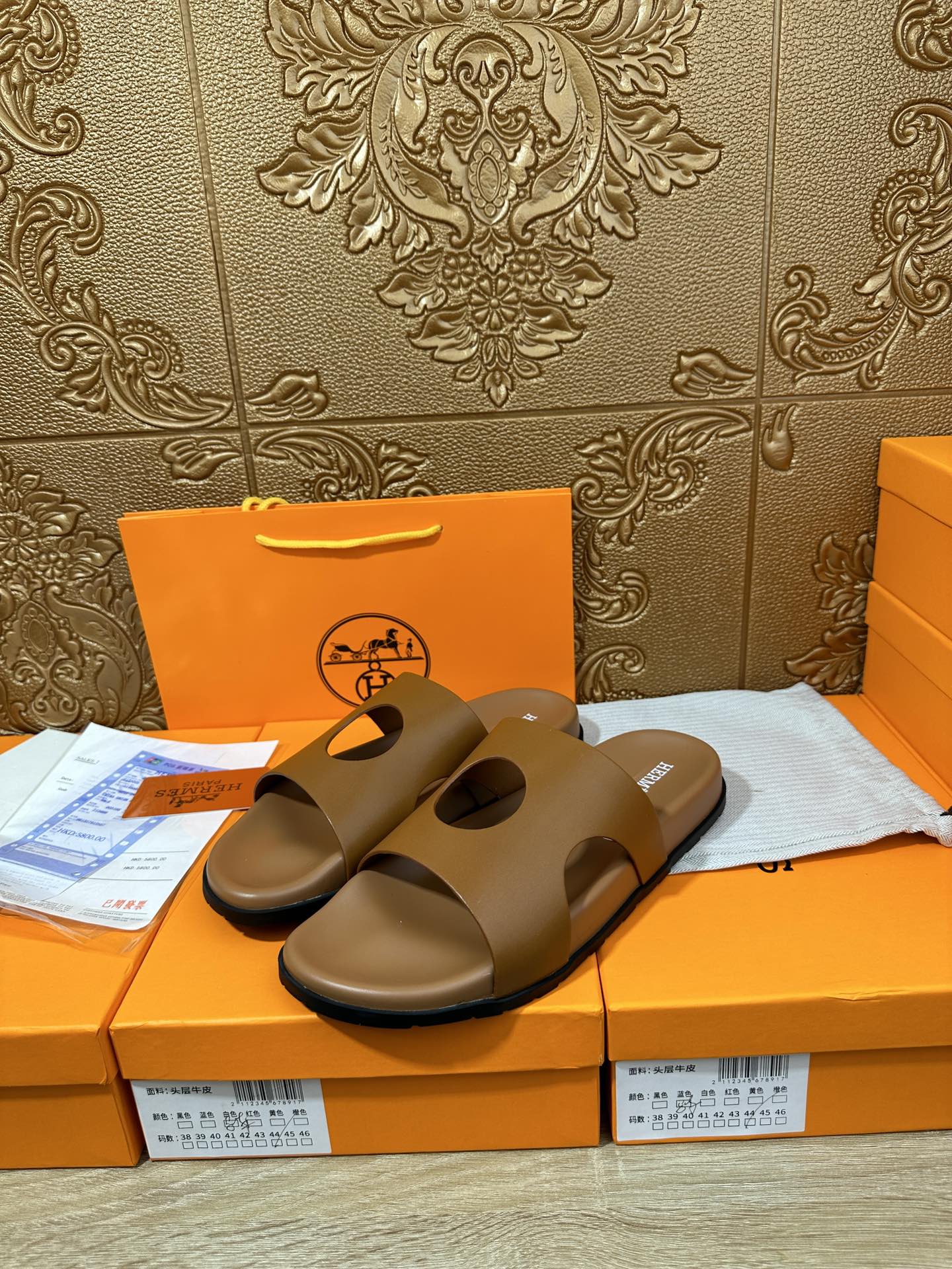 HM CIRCLE CUT SANDAL OCHRE CALFSKIN