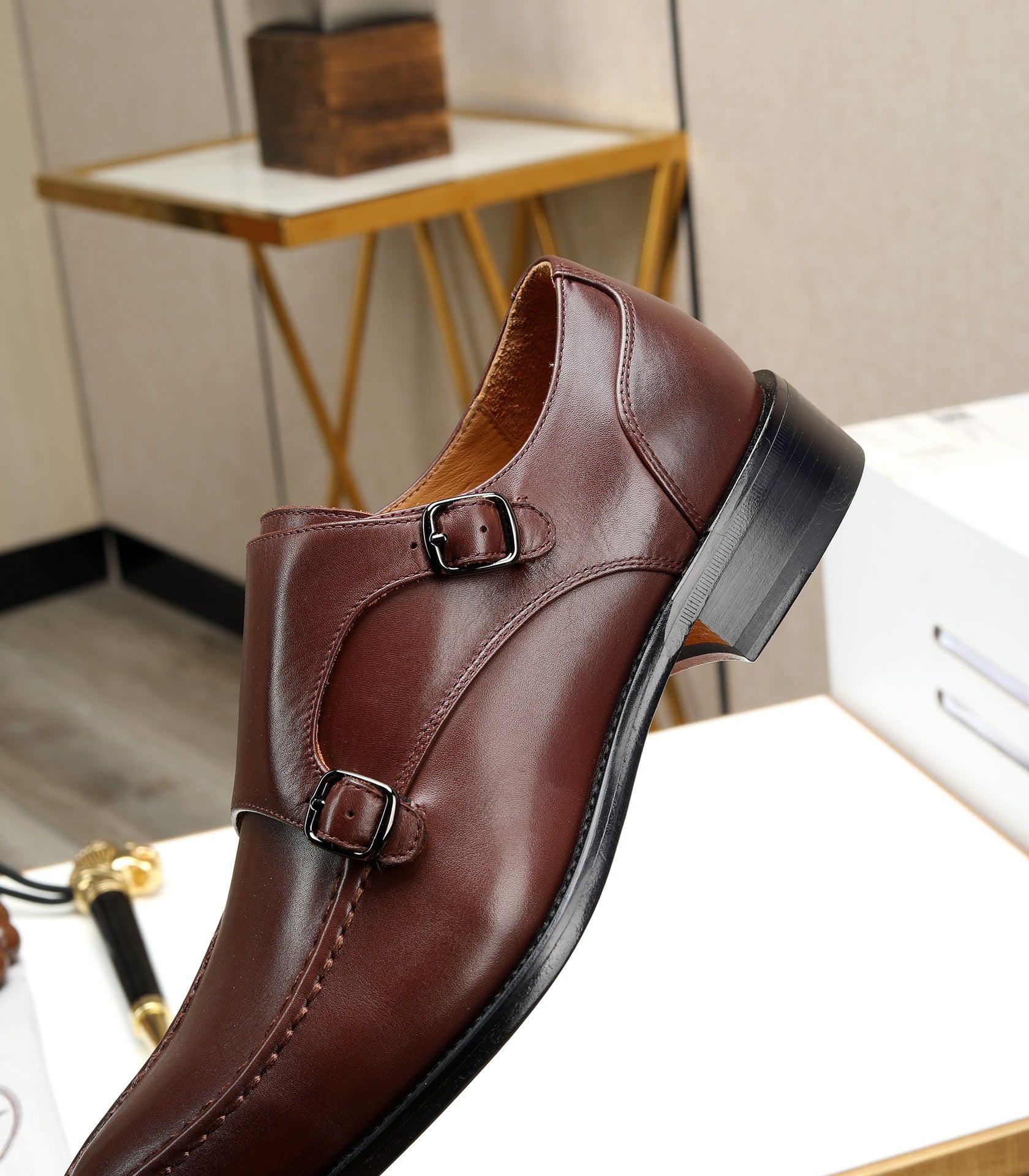 HM DOUBLE MONK STRAP RUSSET CALFSKIN