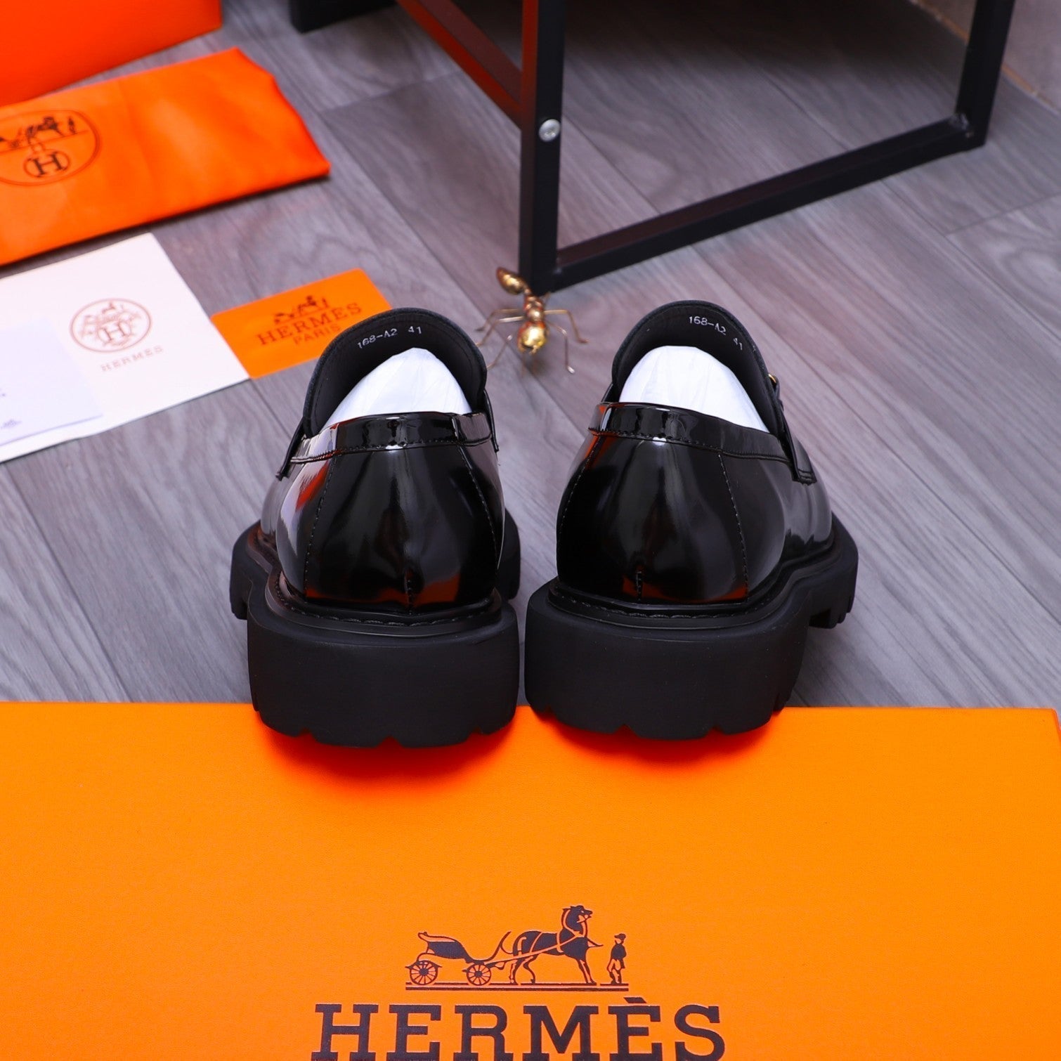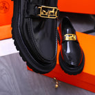 HM GOLD BUCKLE LOAFER GLOSSY BLACK CALFSKIN