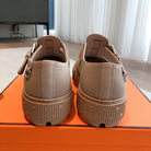 HM ITEM SANDAL ALMOND CALFSKIN AND DENIM