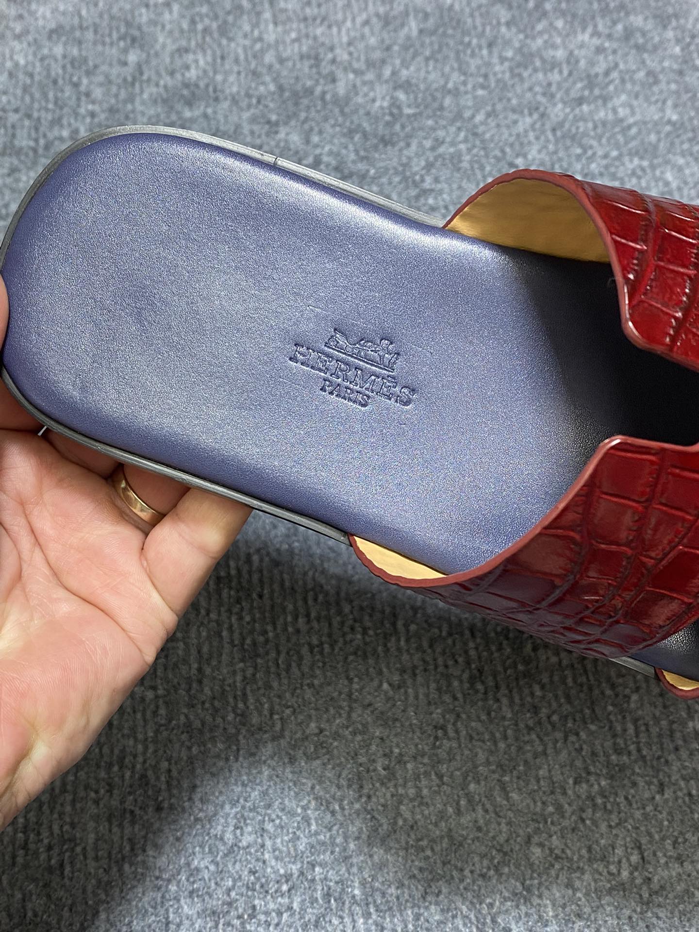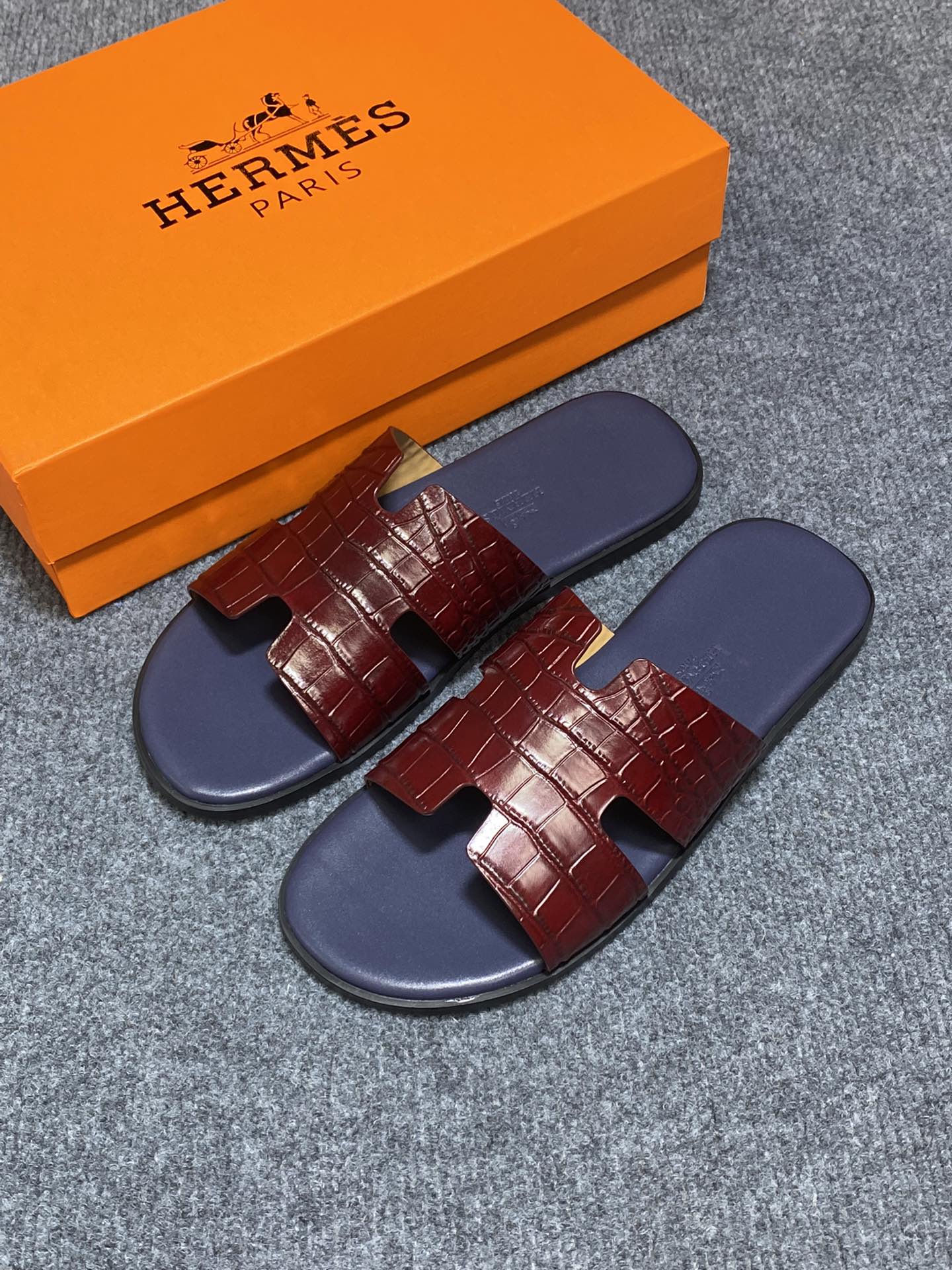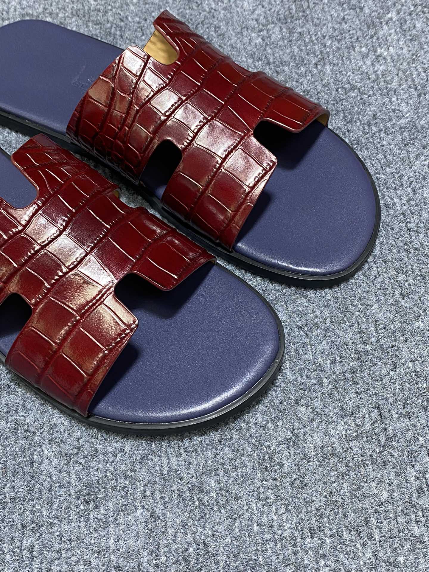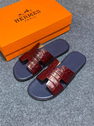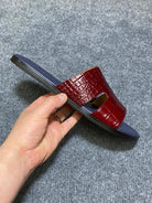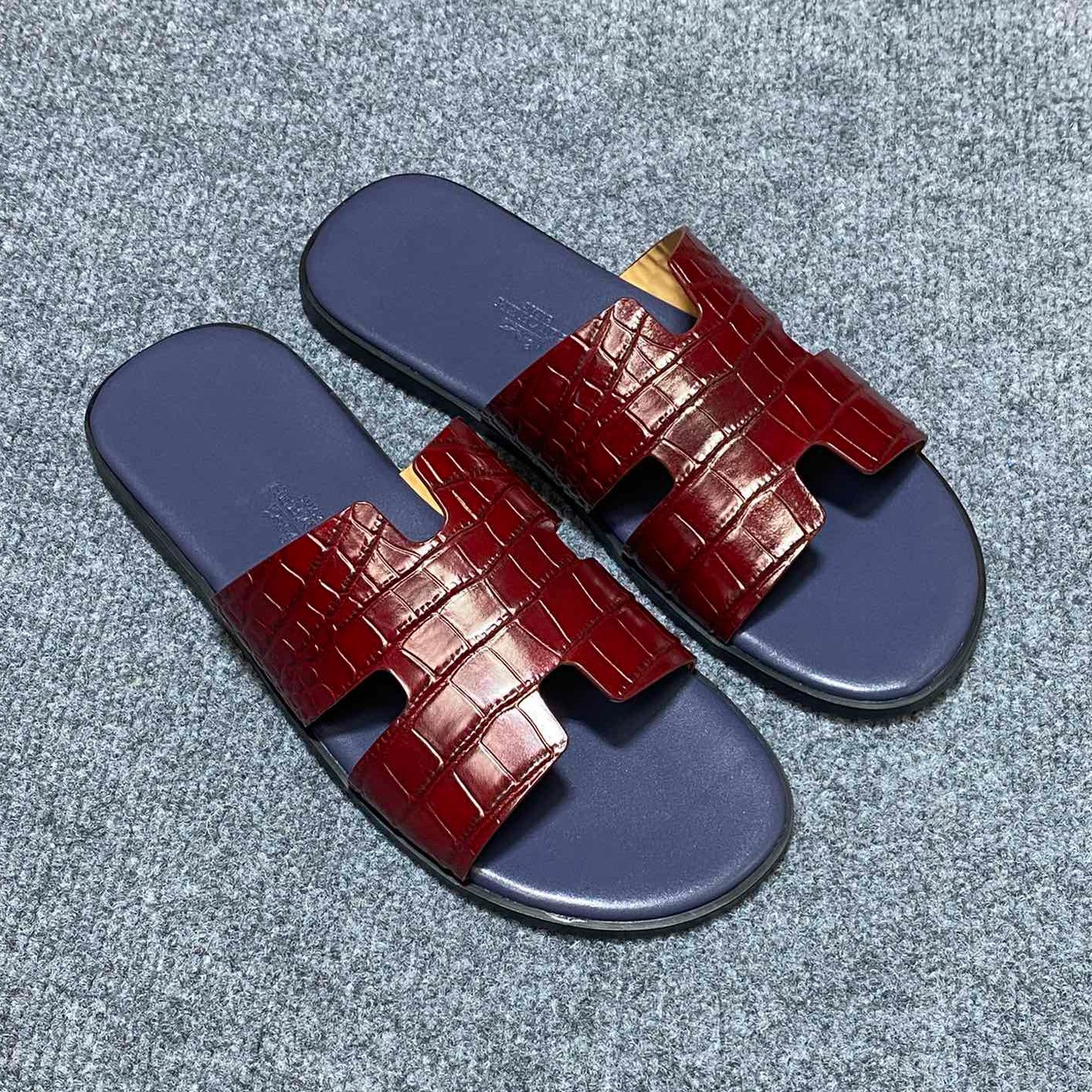 HM IZMIR CROCODILE MOTIF SANDAL INDIGO AND BRICK CALFSKIN