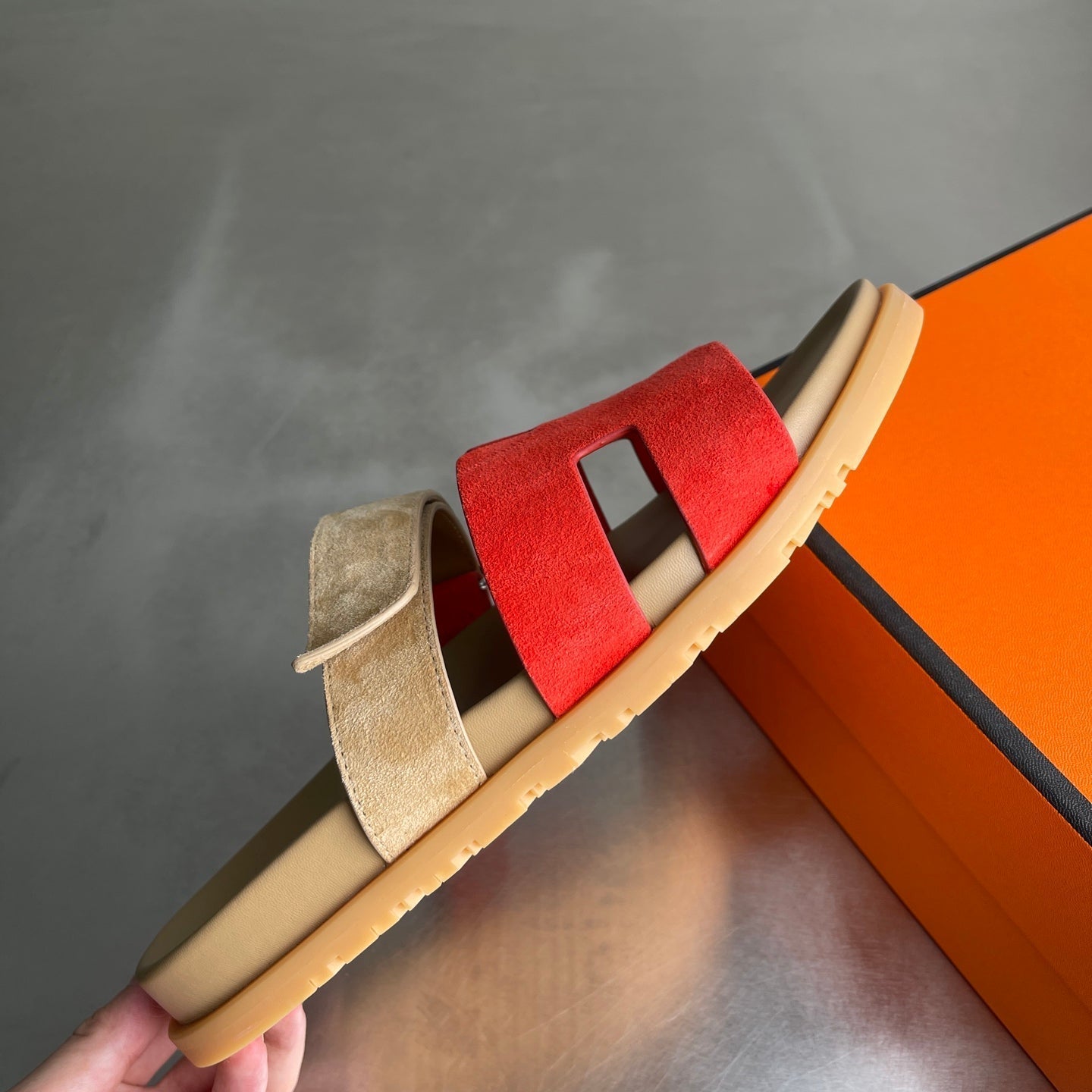 HM Men's Chypre Sandals Red Beige Suede 741433