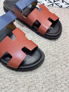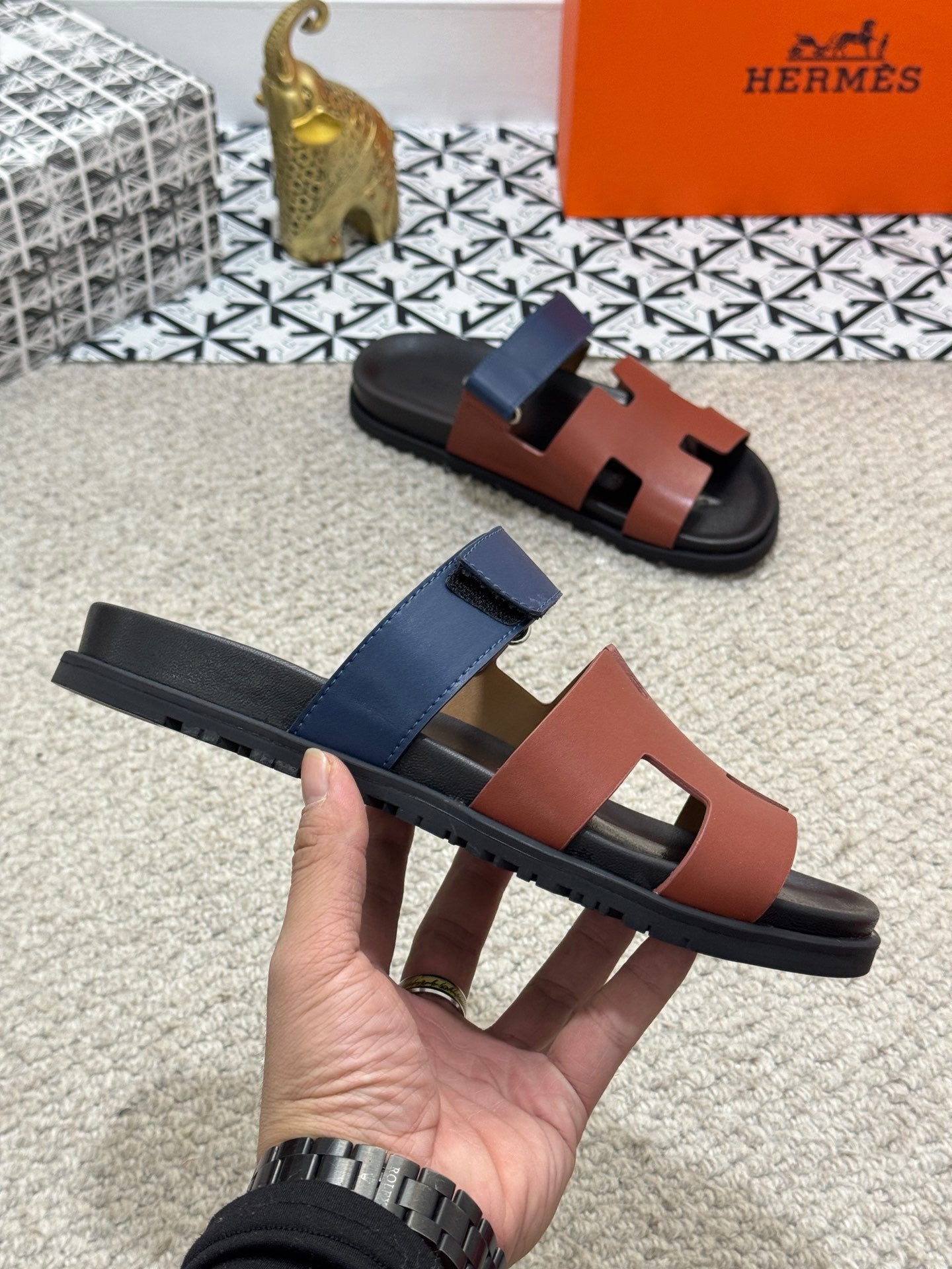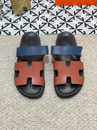 HM Men's Chypre Slide Brown Blue Cowhide 542932