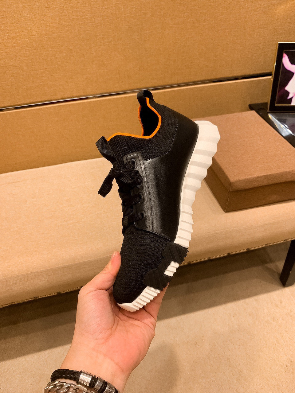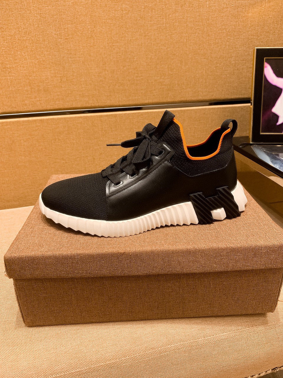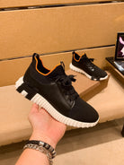 HM Men's Depart Slip-on Sneaker Black Knit Cowhide 709790