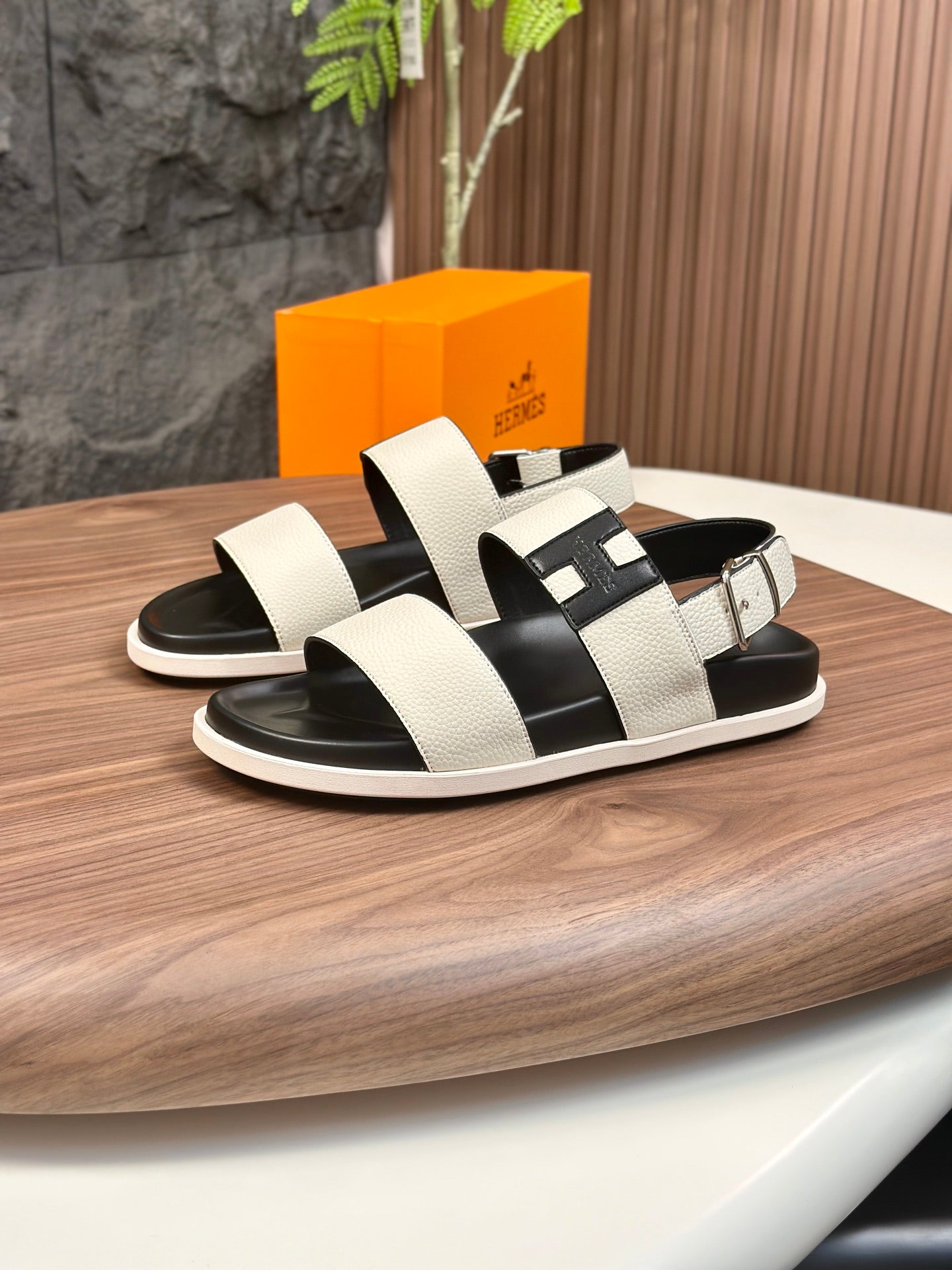 HM Men's Sandals White Cowhide 684855