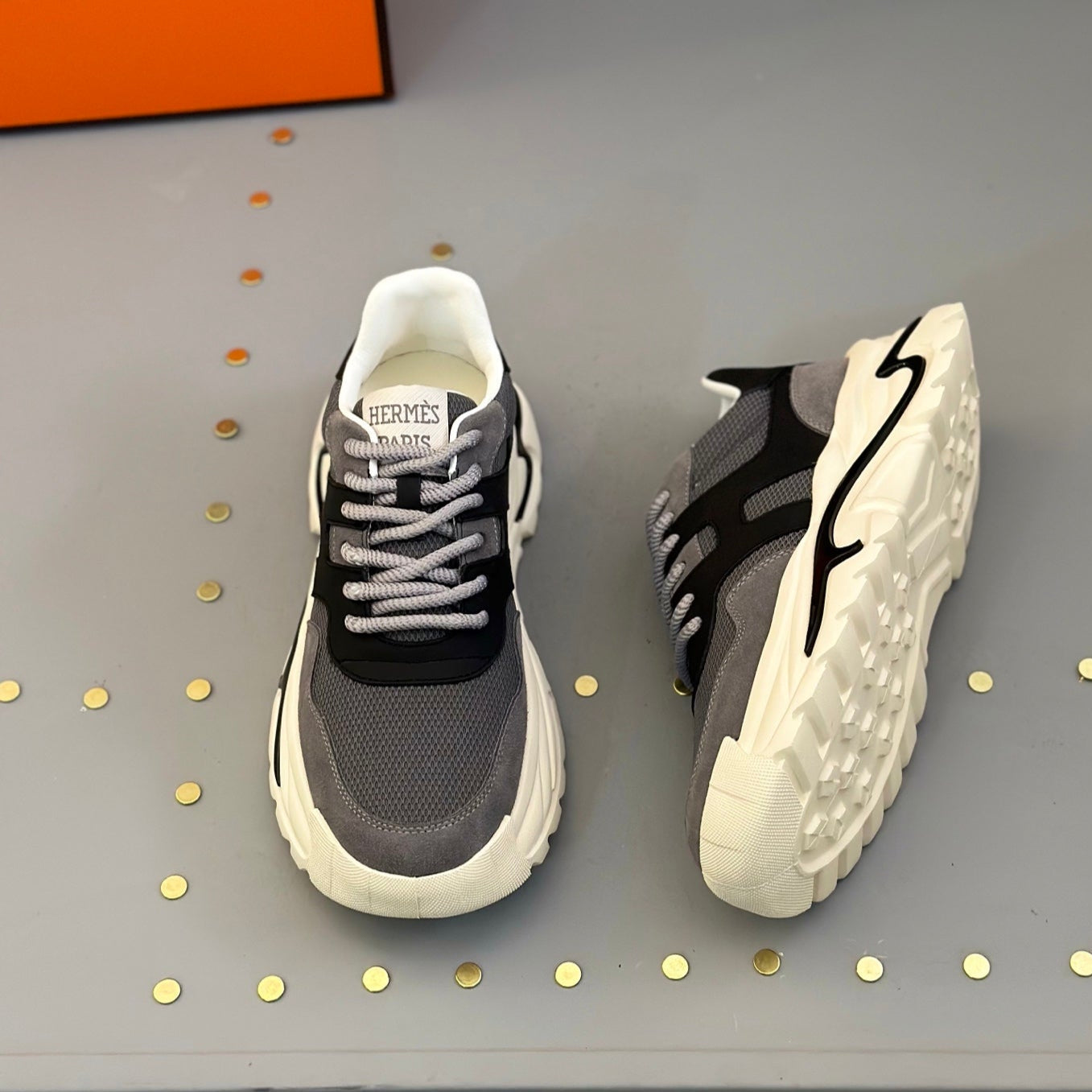 HM Men's Sneaker Grey Black Mesh Calfskin 541267