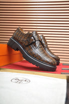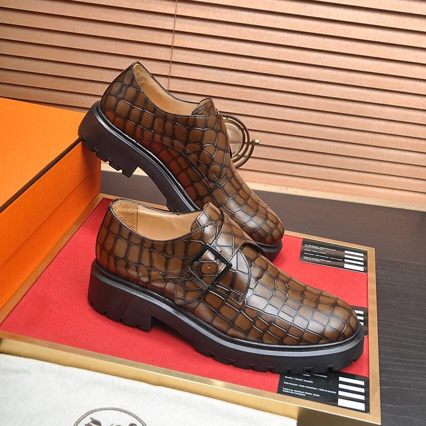 HM MONK STRAP CARAMEL WITH CROCODILE MOTIF CALFSKIN