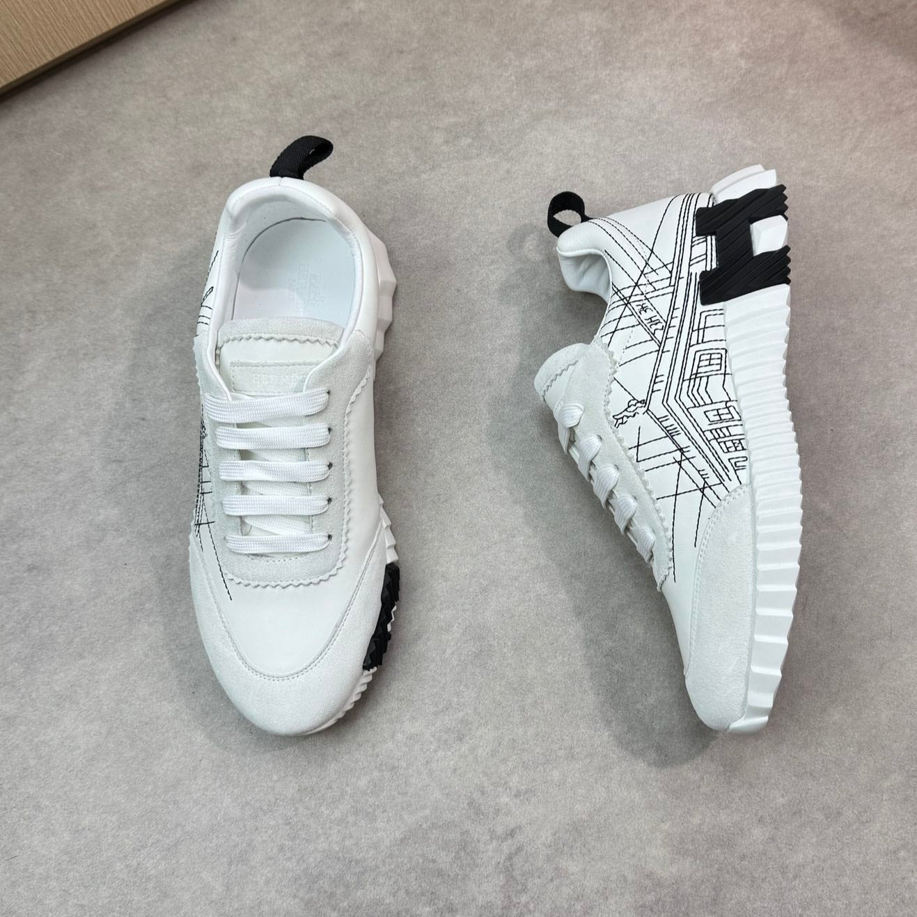 HM Men's Bouncing Sneaker White Black Calfskin Suede 696022